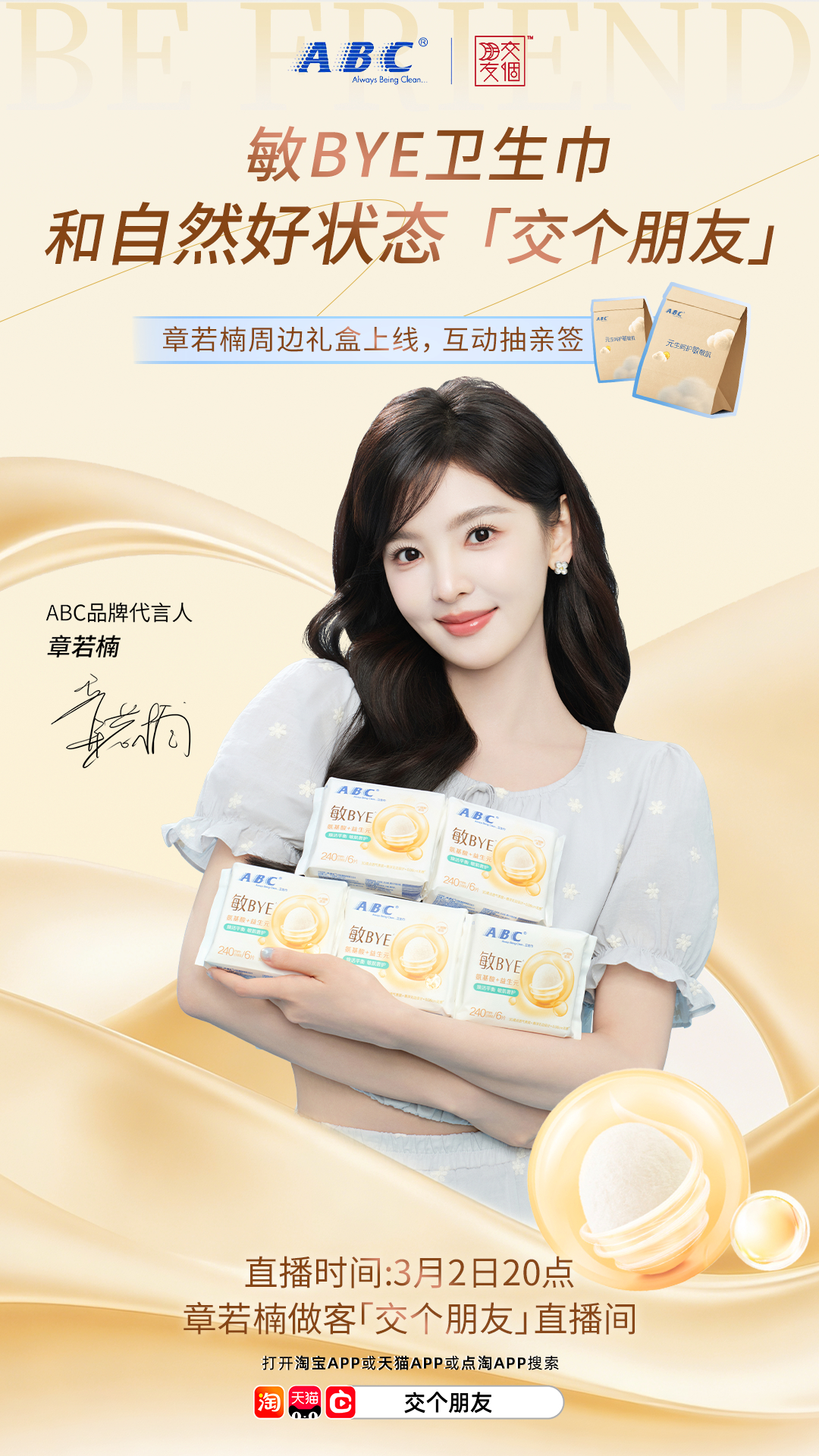 她的好状态秘诀就是ABC敏BYE卫生巾 吧!专为敏肌女生打造,双专利技术配方和pH弱酸面层,促进肌肤屏障构筑,即使如同章若楠连轴转拍摄新剧,也能稳稳守住舒适感,轻松回归自然好状态。对啦女孩们!章若楠今晚8点还会空降天猫「交个朋友」直播间,明星礼盒和海量周边不能错过哈。