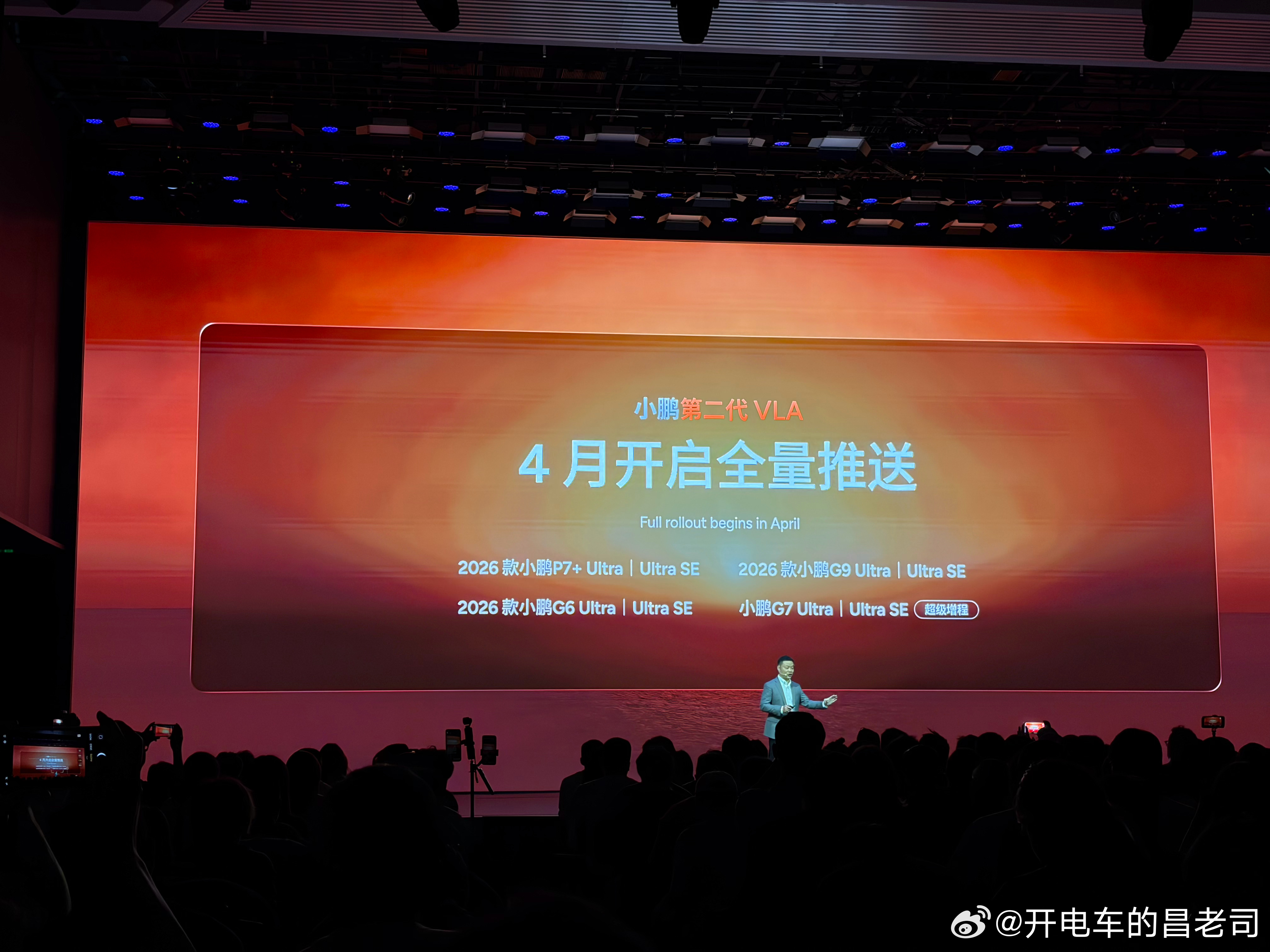 小鹏二代VLA的推送节奏,这个下旬P7/G7/X9d的Ultra车型开始推,4月份全量推