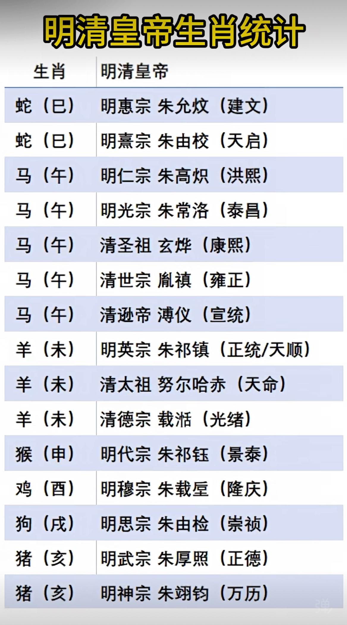 明清28位皇帝的生肖统计,没想到竟然没有属牛的[允悲] 皇帝 明朝 清朝 生肖