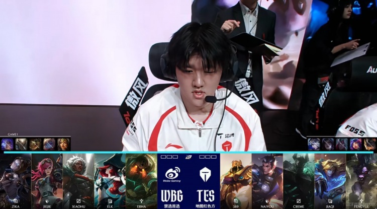 WBG:上单Zika、打野Jiejie、中单Xiaohu、下路Elk、辅助Erha