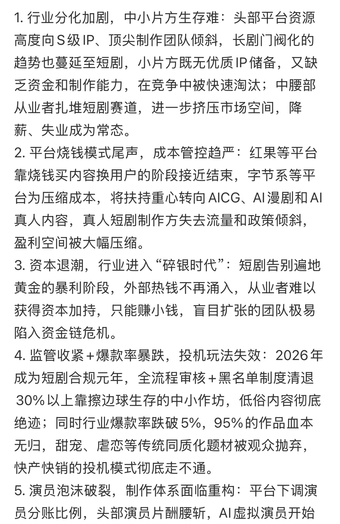 短剧 变天Ai已经卷到短剧了?Ai成本低,容易回本。不少业内人士表示,2026年短剧洗牌,短剧也开始优胜劣汰了……