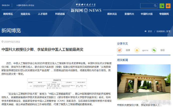 蔚来联合中科大斩获中国AI最高奖国货智驾再添高光!蔚来联合中国科学技术大学,斩获2025 年度吴文俊人工智能科学技术奖科技进步一等奖,这可是中国 AI 领域的最高荣誉🏆获奖项目是《从视觉理解到世界模型的时空认知关键技术及产业应用》,围绕 “时空认知” 难题,实现三大核心创新,形成世界级原创成果,还能应用于自动驾驶、医学影像等多个领域。目前该成果已全量推送超 60 万蔚来用户,搭载在蔚来世界模型全新版本中,通过长时序推理和闭环强化学习,让智驾更具 “类人安心感” 和 “类人效率”,用户使用里程和时长大幅提升。蔚来的智驾技术 + 中科大的科研实力,强强联手拿下最高奖,既彰显中国 AI 硬实力,也让后续智驾体验更值得期待,国货科技太燃了~