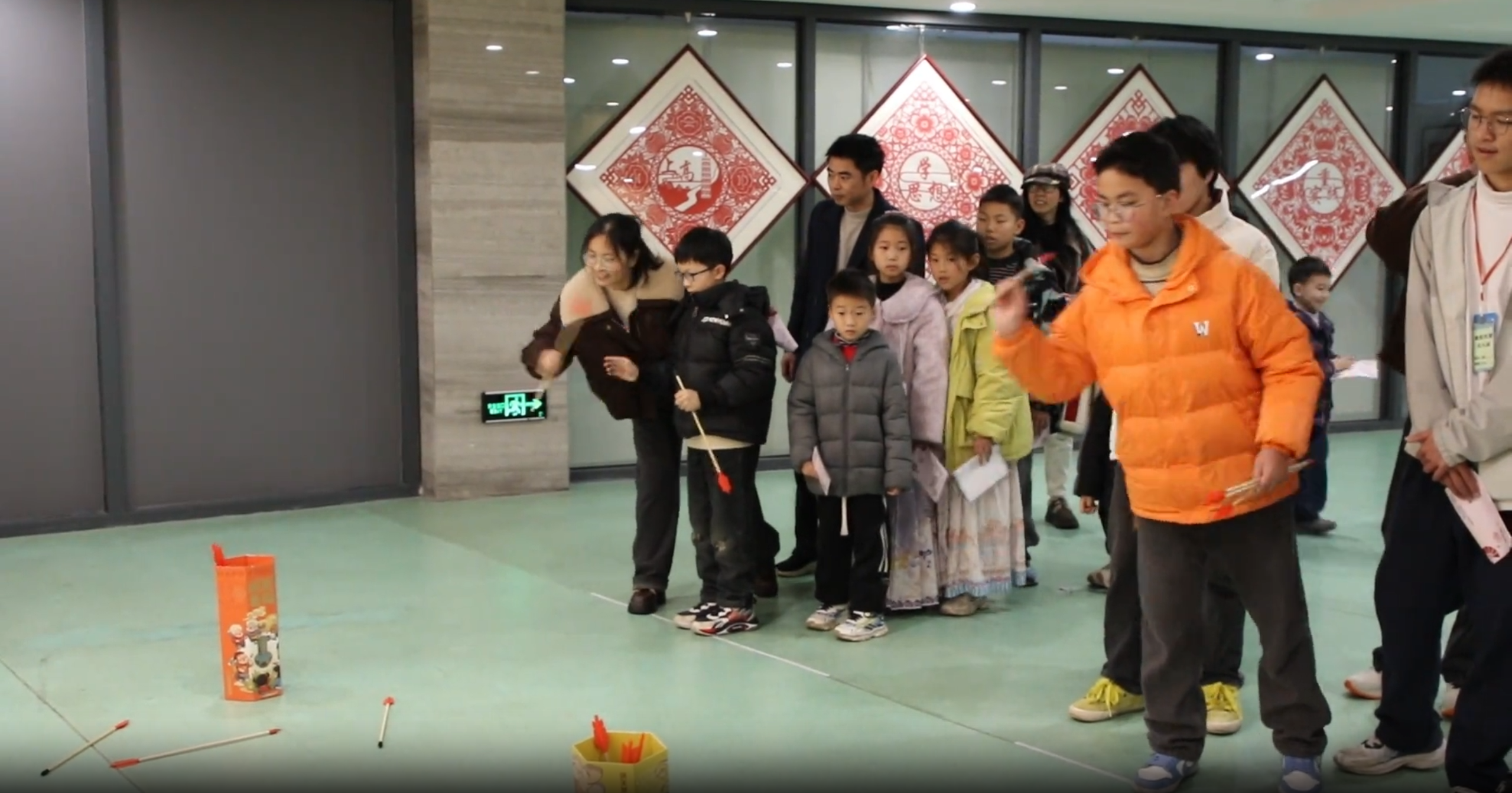 除了好看的戏,更有趣的是馆内设置的八大“非物质文化遗产+民俗”互动游戏。活动特别推出了“集章打卡”模式,设置了“非物质文化遗产拼图乐”“投壶纳福”“马到橙功”“巧夹汤圆”等八个趣味关卡。