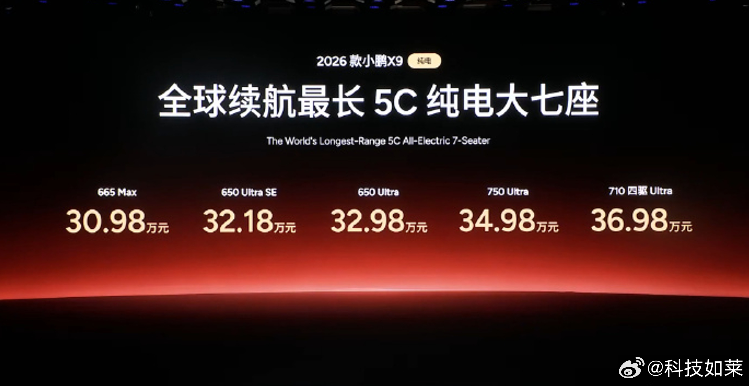 2026款小鹏X9 纯电版MPV车型上市,全球续航最长 5C 纯电大七座,30.98 万元起,这价格你们觉得如何?