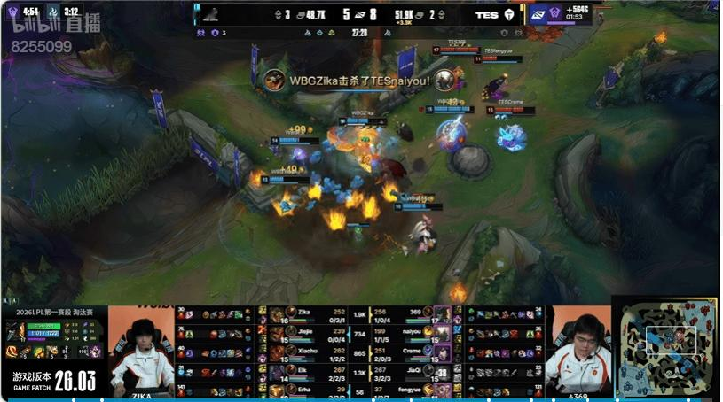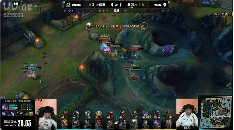 27分钟:JiaQi芸阿娜和队友脱节被瞬秒,WBG打出零换二止住对手攻势