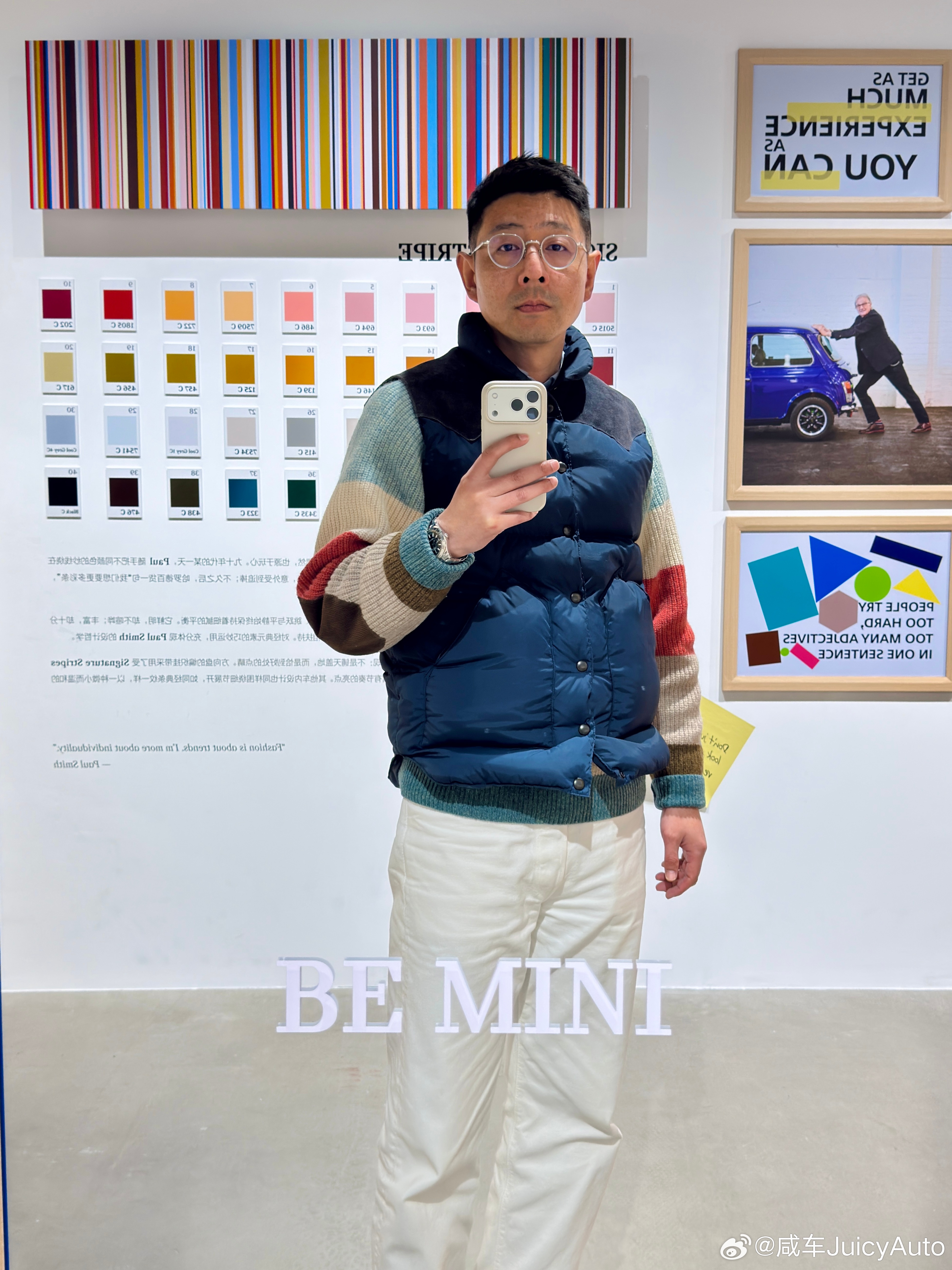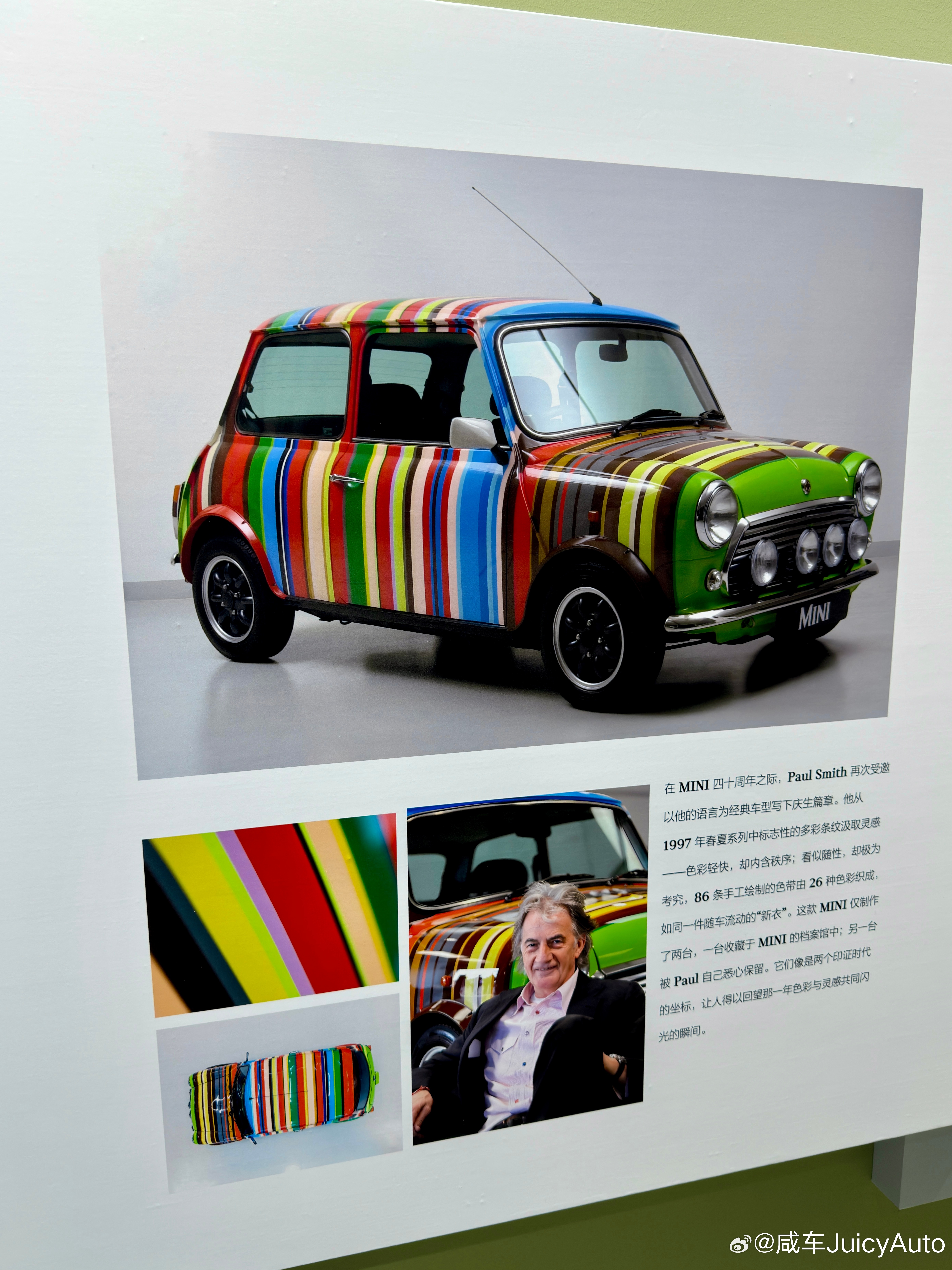 有句话叫 年轻人喜欢的东西往往是老头做的,今儿就去看了看近80岁老头的设计,Paul Smith X MINI Cooper各种童趣盎然的细节,情绪价值到了设计就成了,感觉还可以搞一个Mr Bean X MINI,艺术已成