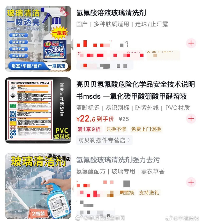 【#多名消费者称用清洁剂后手部被腐蚀#】#部分电商平台违规销售危险化学品#手指被“烧出黑洞”、皮肤接触即刺痛……近期多起家用清洁剂致伤投诉引发关注。第三方检测机构“老爸测评”近期发布的报告显示,17款热门产品中,10款“强力去污”实为强酸所致,2款高度疑似含氢氟酸;羊城晚报“记者帮”调查发现,部分电商平台仍存在危险化学品违规销售现象,而产品包装普遍缺失安全警示。