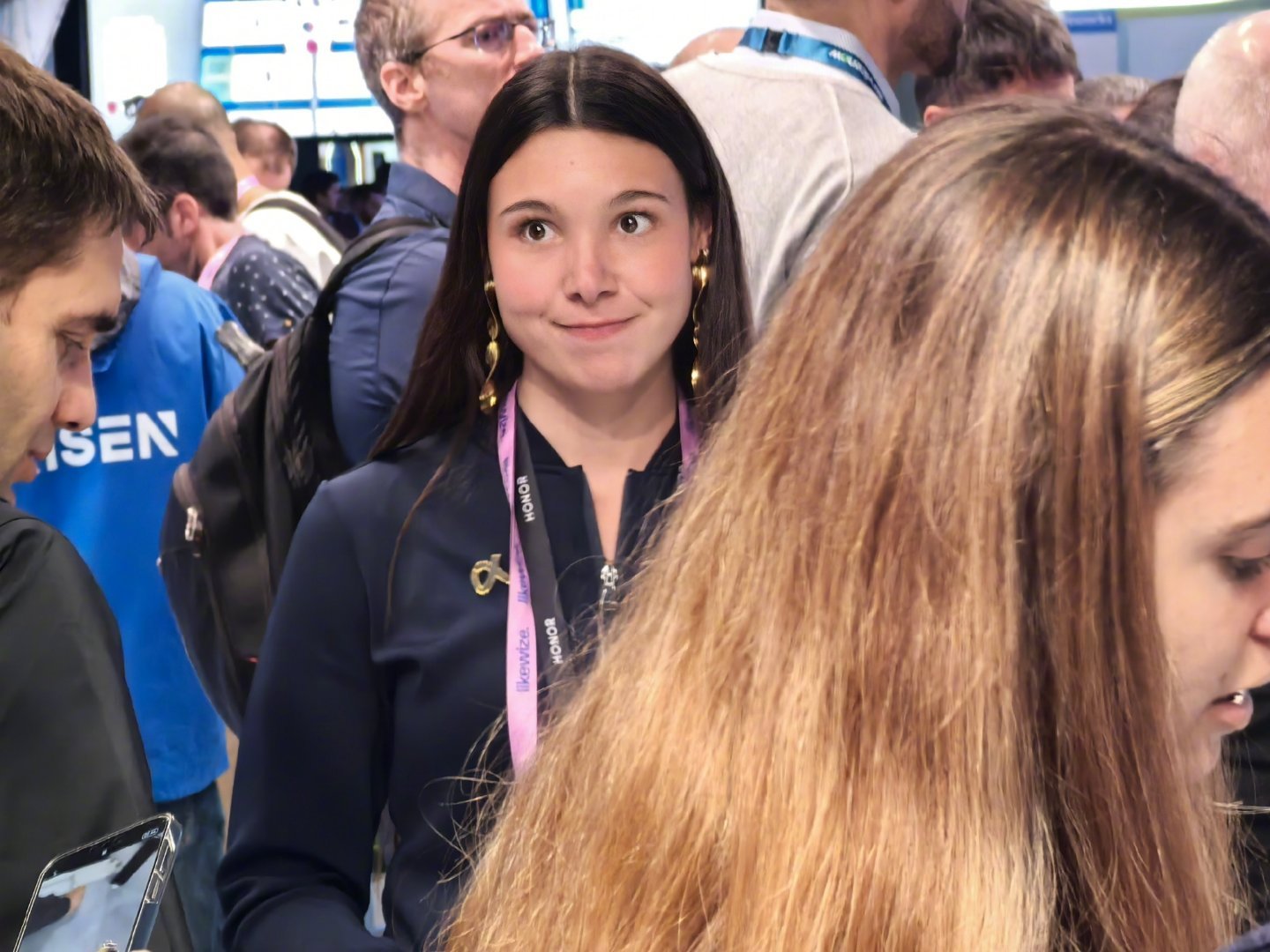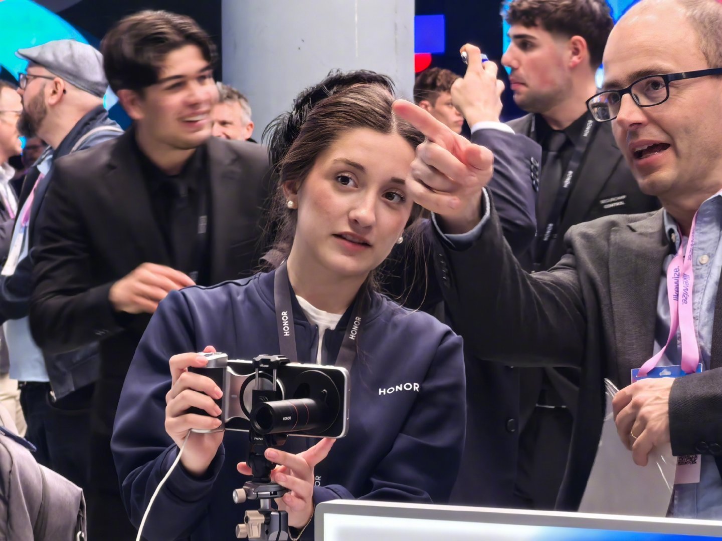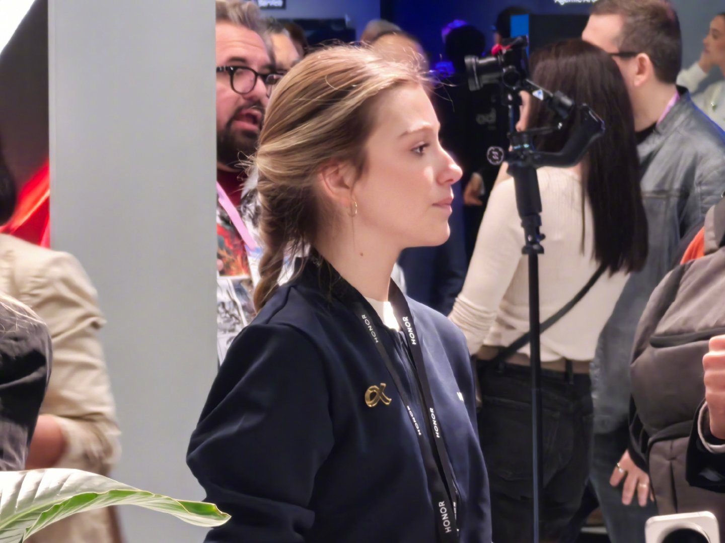 mwc2026 跟华为展厅的男性技术专家讲解员不同,展厅是一色的外籍年轻披肩发美