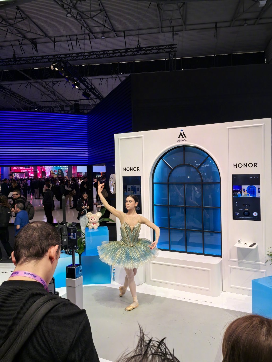 mwc2026 跟华为展厅的男性技术专家讲解员不同,展厅是一色的外籍年轻披肩发美女员工,好多人围着交流,还有跳芭蕾的,参观人员特别密集,都不走 西班牙·巴塞罗那