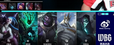 WBG选用:Zika掘墓,Jiejie蒙多,Xiaohu加里奥,Elk金克丝,Erha锤石