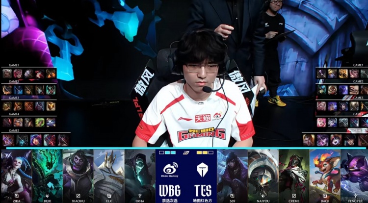 WBG:上单Zika、打野Jiejie、中单Xiaohu、下路Elk、辅助Erha