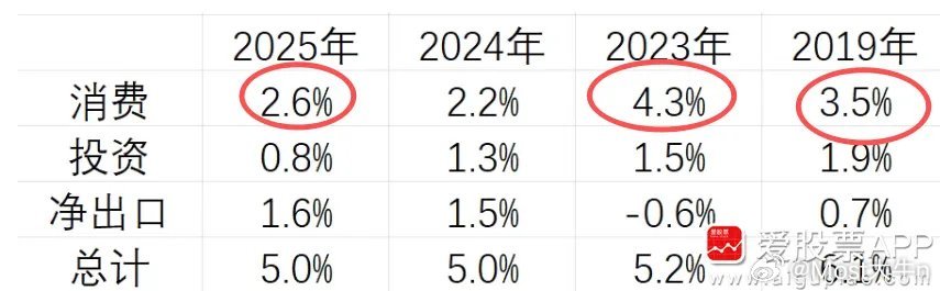 过去2年内需消费压力真挺大的,2025消费拉动GDP增长2.6%,相对于23年的4.3%和19年的3.5%,放缓了很多!所以才要提振内需,看看重要会议有啥大招吧。