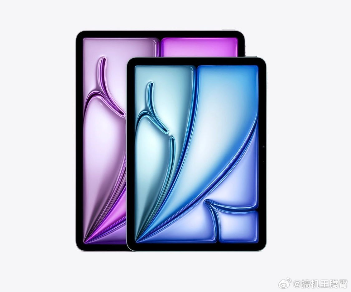 【M4芯片款iPadAir发布】除iPhone17e外还有个新板子,搭载M4处理器(8核CPU + 9核GPU),11英寸、13英寸两个版本,1200万前置 + 1200万后置双摄,11英寸版重462g、13英寸版重616g,提供蓝、紫、深空灰、星光色4个色,支持WiFi 7、蓝牙6.0,升级到12GB运存,依旧60Hz刷新率,4799元起售,买不买