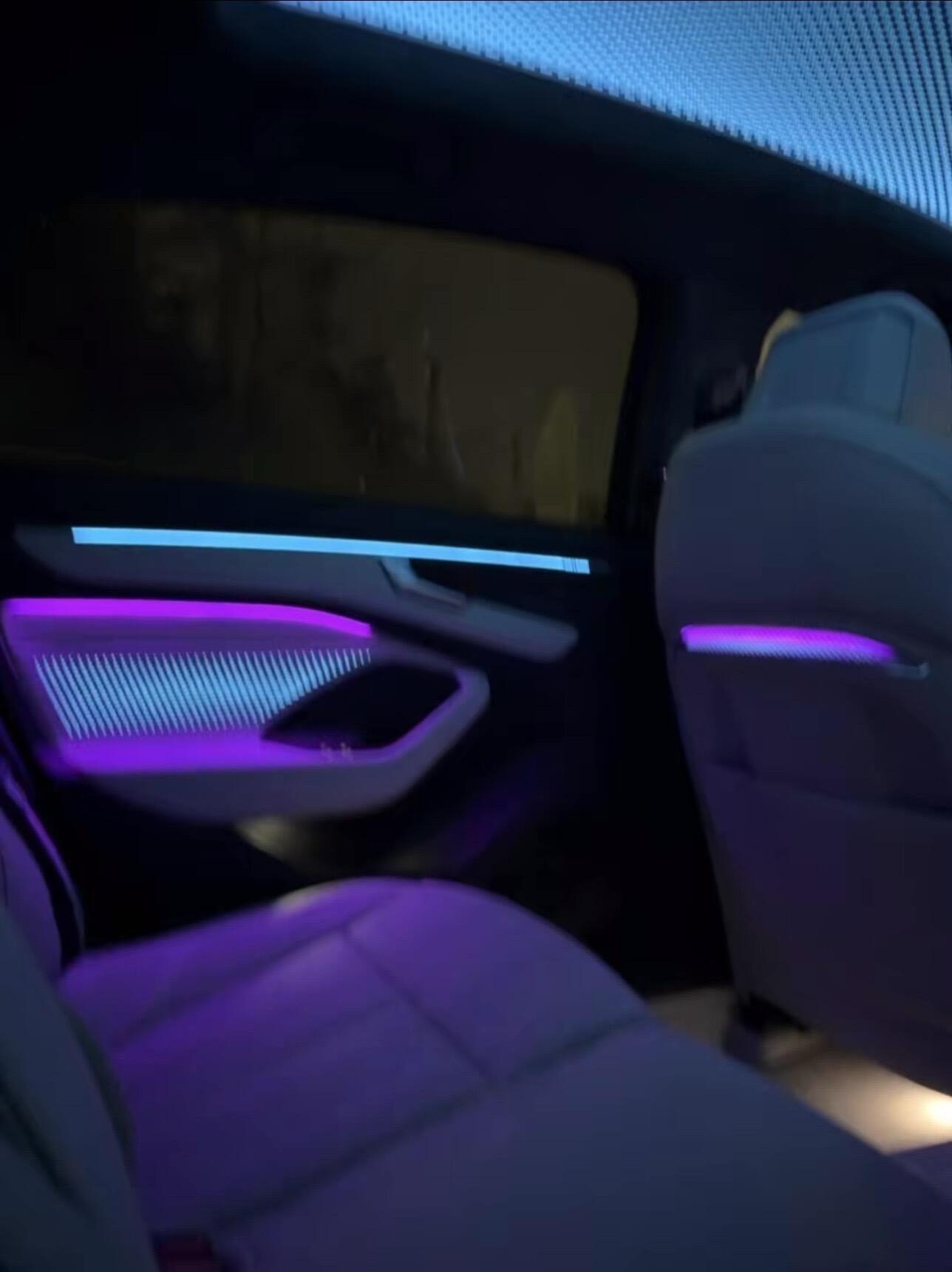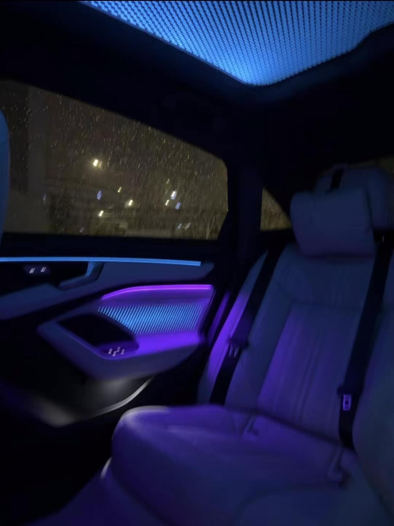新款a6氛围灯。星空点缀,氛围灯采用最新家族式风格,奔驰不再是氛围灯的引领者氛围感的引造还得看奥迪