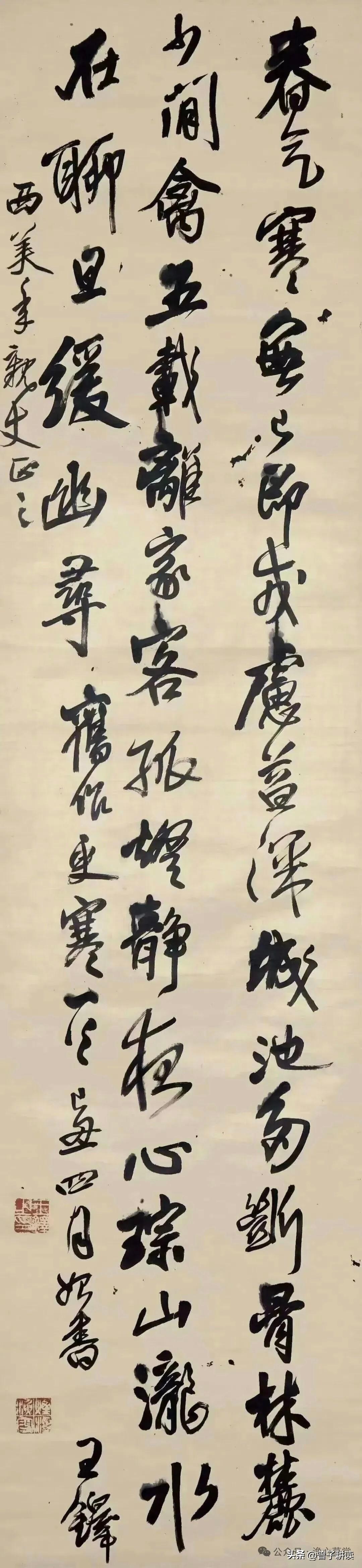 墨汁泼满纸,却成了书法神作? 这才是真正的“笔落惊风雨”!王铎独创“涨墨法”,墨汁如洪水猛兽般在纸上肆意流淌,却又被他用千钧笔力牢牢锁住。这幅立轴,墨色浓淡交织,线条如铁蛇游走,把明末柔媚书风砸得粉碎。你敢信,这是一位“贰臣”写出来的狂草吗?