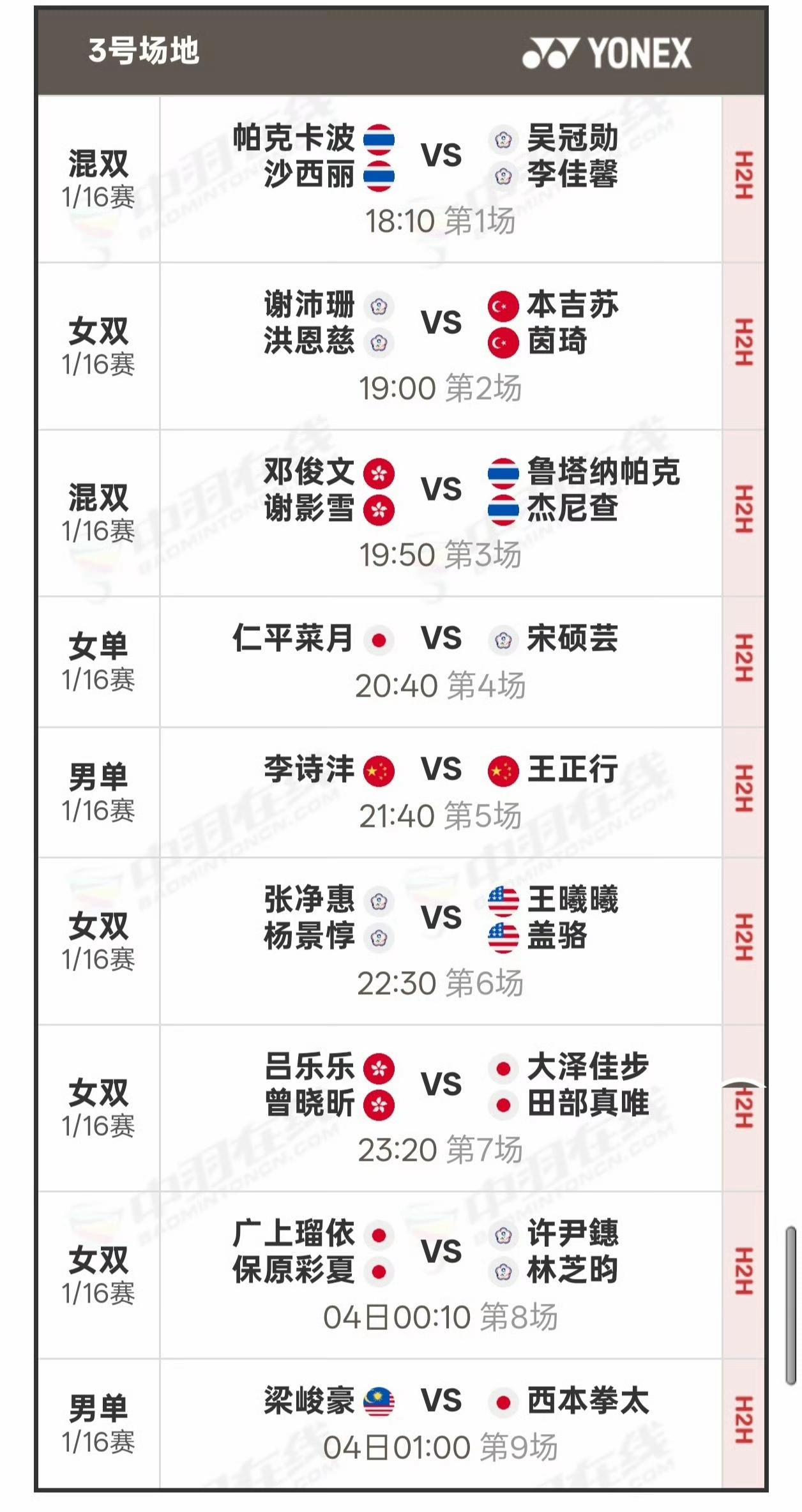 🔥全英羽毛球公开赛今天开战🔥! 2026全英羽毛球公开赛属于超级1000赛,今日(3月3日,正月十五)是比赛首日,赛程如图所示。 今天进行各单项首轮即1/16比赛,晚上六点开赛。 国羽主力选手石宇奇、陈雨菲、梁王组合、凤凰组合、圣谭组合、凡贤组合全部参赛。 除了梁王组合的比赛在午夜进行,其他国羽选手比赛时间还算友好,小伙伴们一起观赛哦[笑哭]。