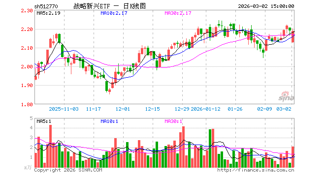 3月2日,战略新兴ETF(512770)跌0.14%,成交额457.40万元。当日份额增加100.00万份,最新份额为1.12亿份,近20个交易日份额减少500.00万份。最新资产净值计算值为2.45亿元。
