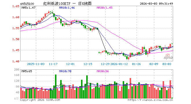 3月3日,红利低波100ETF(515100)开盘涨0.14%,报1.480元。红利低波100ETF(515100)重仓股方面,冀中能源开盘涨0.34%,大秦铁路涨0.19%,双汇发展涨0.00%,厦门国贸涨0.00%,江中药业涨0.28%,苏泊尔涨0.00%,雅戈尔涨0.14%,中国石化涨0.56%,格力电器跌0.03%,葵花药业跌0.07%。