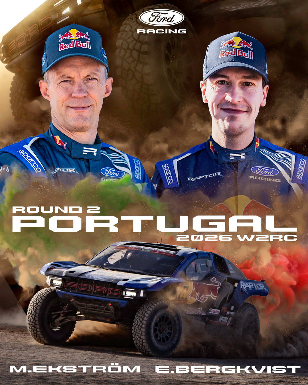 福特确认出战2026赛季W2RC葡萄牙BP终极越野拉力赛阵容,赛恩斯与埃克斯特罗姆两个车组将为福特冲击比赛胜利~