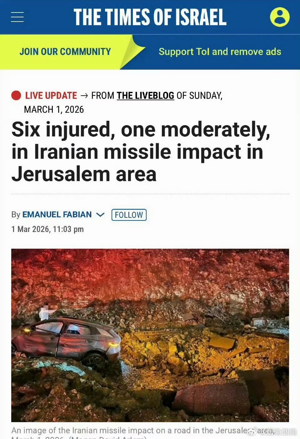 【又一台中国汽车在中东战乱中上热搜】上一次是小鹏G6挨了一导弹没起火没爆炸引发网友热议。这次是比亚迪元PLUS在以色列耶路撒冷附近遭遇伊朗导弹近距离爆炸,车辆位于弹坑边缘,车身主体结构保持完整,未发生起火爆炸,车门可正常开启,双闪灯持续工作,事件造成6人轻伤,无人员死亡。供应链上没有秘密。后天惊蛰,比亚迪在深圳准备搞一件大事,昨天股价大涨,而有个新势力却因此而股价下跌,也许是主力知道比亚迪可能发布全新的闪充技术并铺开闪充桩,据说一台60度电的海狮05EV,充满只需要8分钟。那么……此外,还有可能发布新一代刀片电池、新一代混动、可变磁通量电机、全新EV平台等。