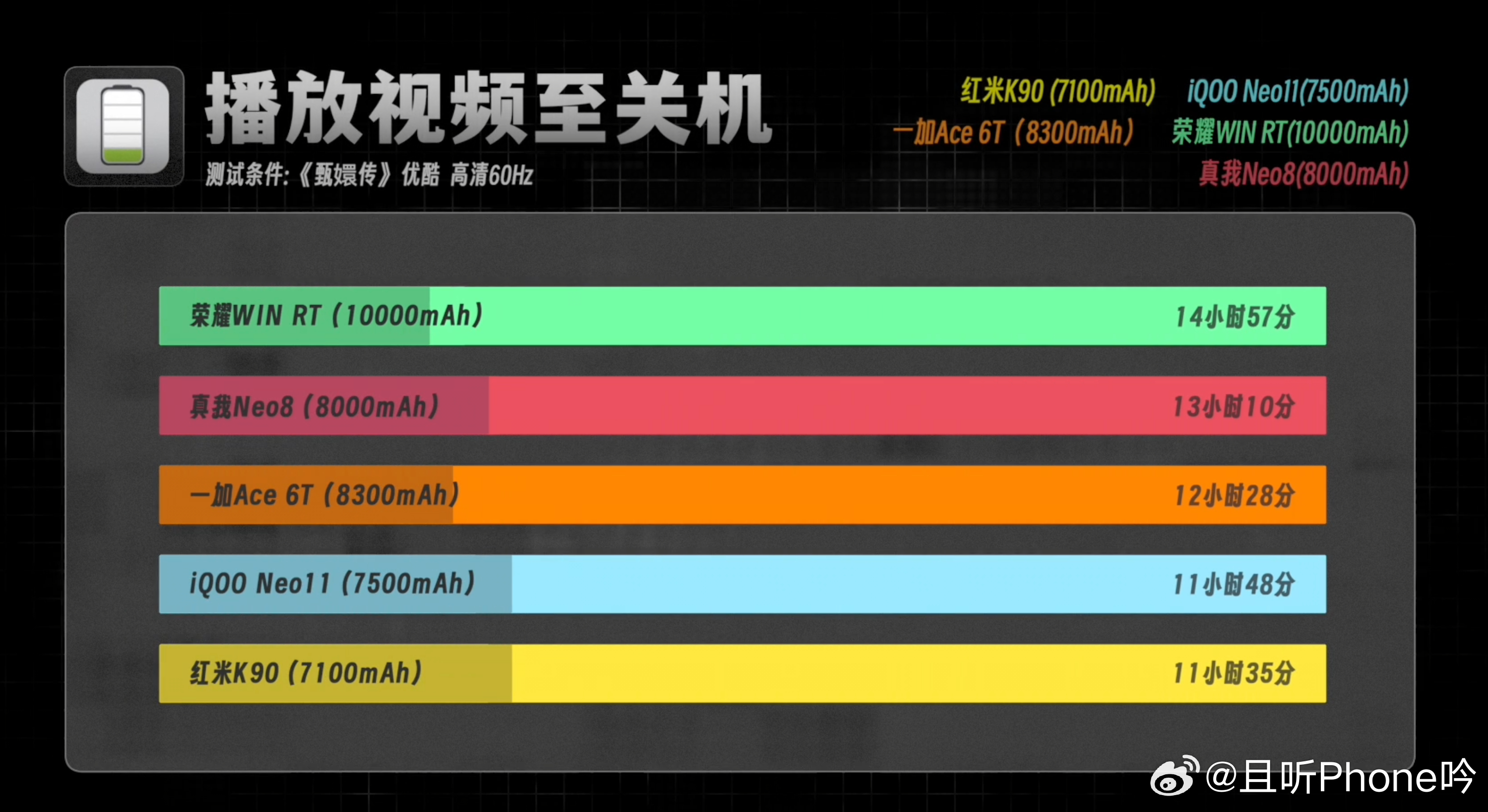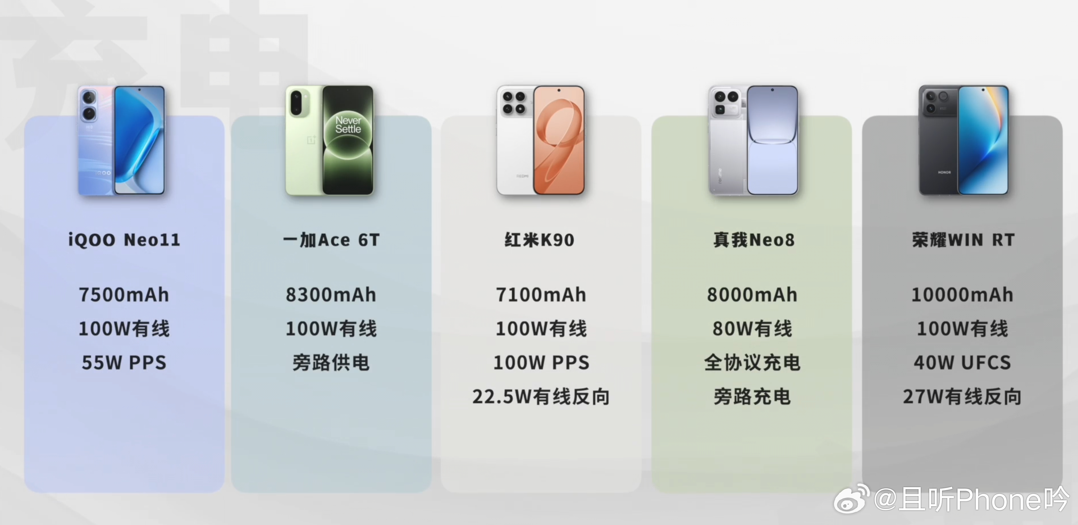 荣耀WIN RT:10000mAh一加Ace 6T:8300mAh真我Neo8:8000mAhiQOO Neo11:7500mAh红米K90:7100mAh