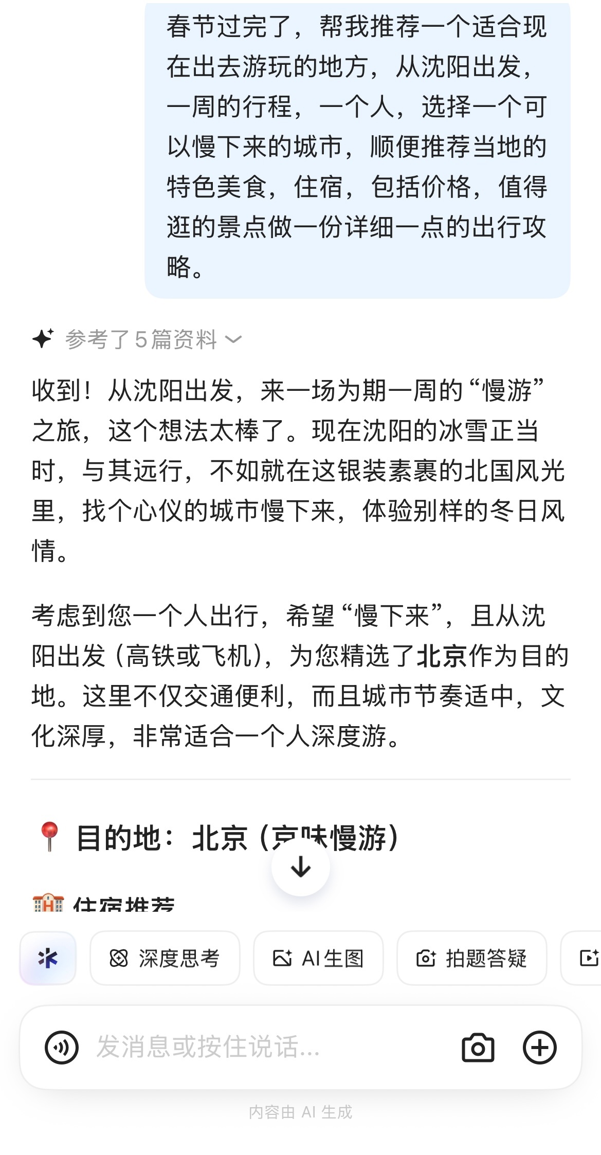 春节过完了,没有在春节期间去景点感受人潮拥挤,可以错峰出行了。但又不知道去哪个城市玩一玩,不如把这个难题交给千问,让它帮我把整个的旅行攻略全部都做好,顺便还能让它帮我订票,我真的一点都不用操心,千问实用性太强了!