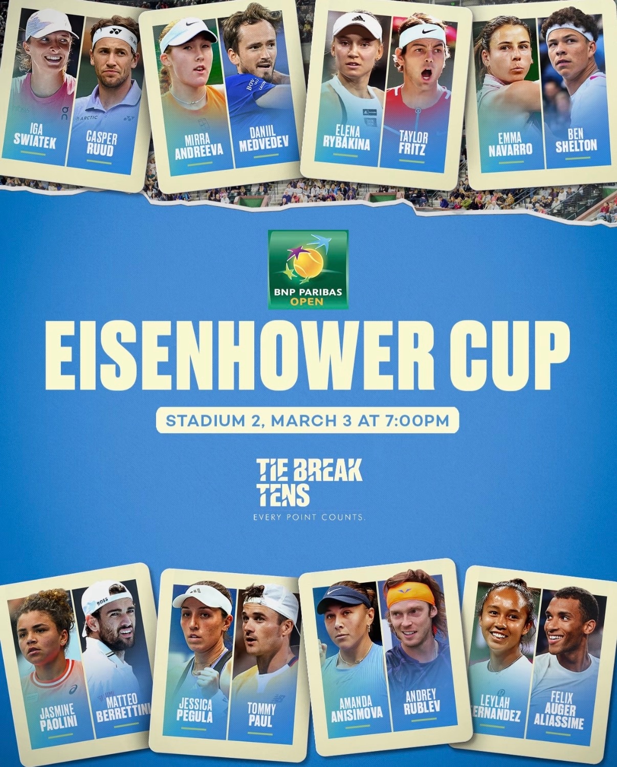 印第安维尔斯官方宣布,卢布列夫和梅德韦杰夫无法出战混双抢十表演赛,由勒纳-钱和布勃利克顶替他们的签位。
