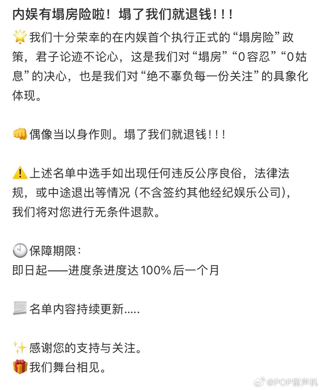 内娱推出首个“爱豆塌房险” ,塌房就退钱