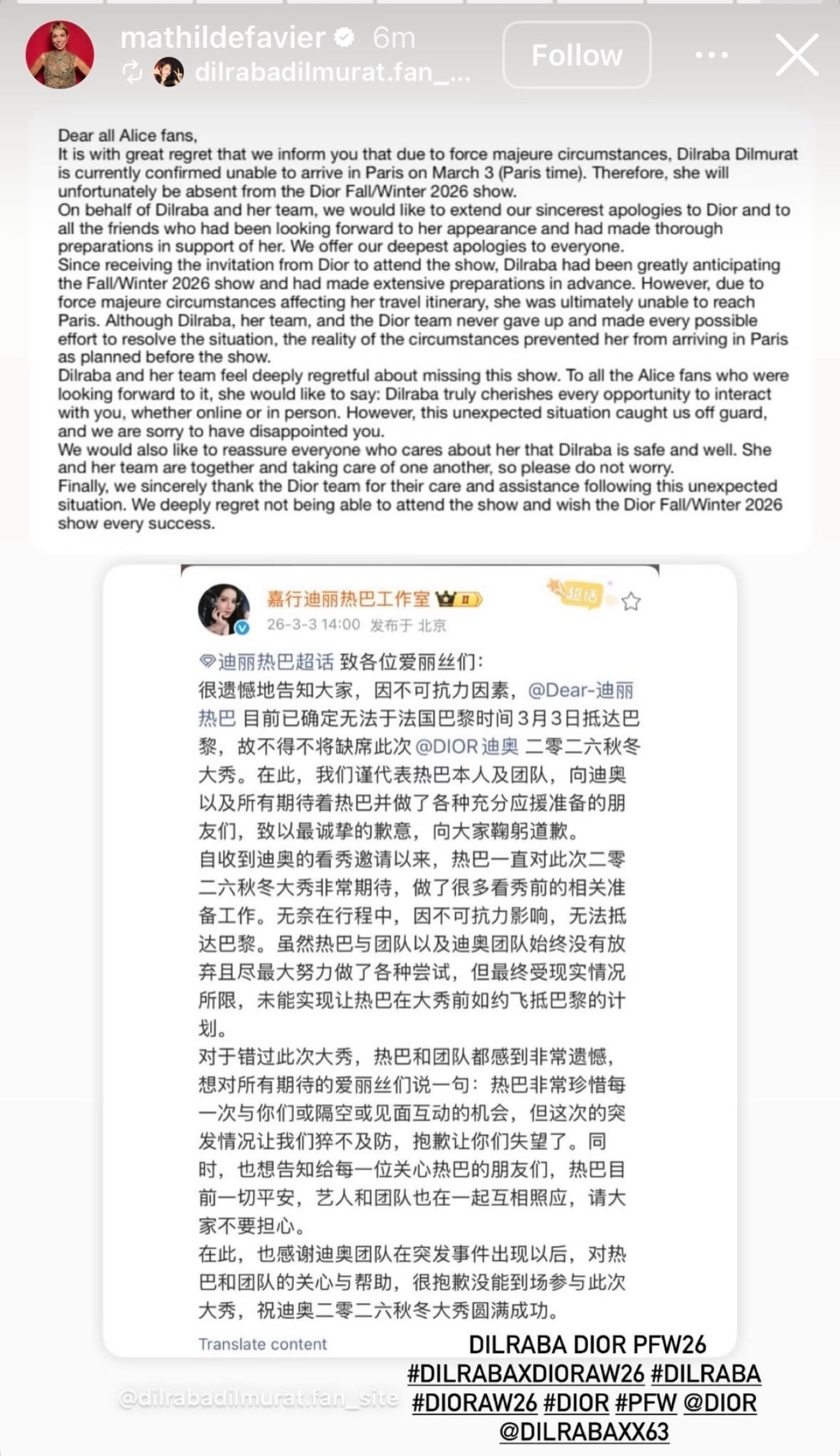 Dior全球公关总监发文了