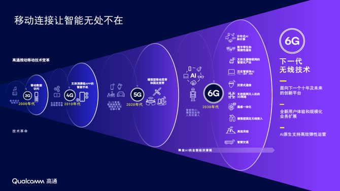 更值得关注的是,高通将6G打造为端到端的AI原生系统,实现“云端算力优势、网络稳定承载、终端智能自治”的协同架构,成为本次展会最具前瞻性的技术突破,也让其在6G领域的技术探索成为产业发展的重要参考。从2G时代奠定CDMA蜂窝通信基础,到3G推动移动互联网普及,4G催生移动应用经济,5G构建万物互联的智能体系,高通数十年深耕无线通信领域,深度参与每一代移动通信技术的演进。