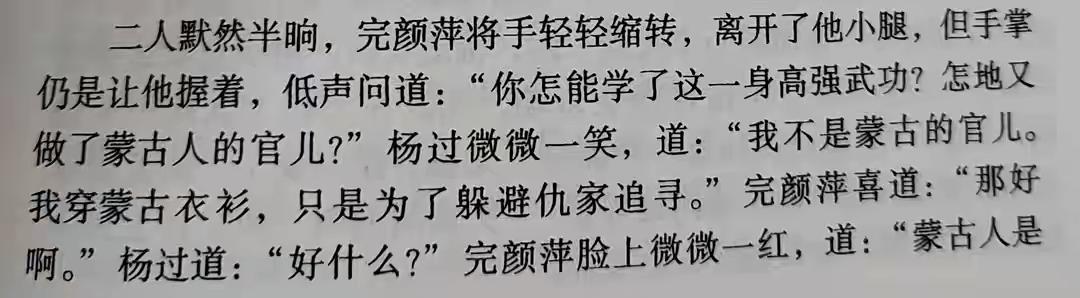 神雕里最清醒的“三心二意”:完颜萍,如何活成人生赢家? 在《神雕侠侣》的江湖里,有人为爱痴狂,有人为国殉难,有人漂泊无依,唯有她看似不起眼,却以“清醒”二字,活成了全书最大的赢家。她就是完颜萍——出身金国皇族,背负血海深仇,却不执着于爱恨,随遇而安,最终子孙绵绵,尽享人间荣华。 完颜萍的人生,从一开始就满是坎坷。金国灭亡,父母被蒙古丞相耶律楚材所杀,身为皇族后裔的她,从此踏上复仇之路,一路追踪耶律楚材,只为刺杀仇人报仇。可耶律楚材的次子耶律齐,是青年高手,完颜萍几番刺杀,皆被他以礼相待、轻松击败,既未出言讥讽,也未轻薄羞辱。一次次失败后,复仇的希望渐渐破灭,她甚至动了自杀殉亲的念头,满心绝望之际,杨过的出现,成了她人生的第一个转折点。 杨过见她眼神凄楚,酷似小龙女,便出手相助,设计让耶律齐认输,任由完颜萍取命。可刀架在耶律齐颈间,完颜萍却迟迟下不了手——不是因为恨不起来,而是相处中,早已对耶律齐生出倾慕之心。可她心里清楚,两家隔着国仇家恨,血海深仇横亘其间,儿女情长终究是奢望;更重要的是,耶律齐对她并无情意。想通这一点,完颜萍没有沉溺于无望的情愫,而是果断转身,另寻出路。 杨过的英俊潇洒、机智侠义,让她动了“退而求其次”的心思。在杨过的撩拨下,她欲拒还迎,险些以身相许,若非程英及时出现,早已生米煮成熟饭。可这份短暂的暧昧,很快因小龙女的归来破灭——她才发现,自己不过是小龙女的替身,竹篮打水一场空。接连两次情感受挫,换作旁人或许会消沉,可完颜萍依旧清醒,不纠结于过往,很快抓住了新的机会。 彼时,情场失意的武修文恰好出现,且对她倾心。武修文是郭靖徒弟,出身武学世家,父亲武三通是一灯大师座下四大弟子之一,身份地位仅次于耶律齐,远超杨过。权衡之下,完颜萍再次选择“退而求其次”,嫁给武修文。这一次“妥协”,成了她人生逆袭的关键。 婚后的完颜萍,过得安稳而满足。她不纠结武修文是否对郭芙念念不忘,只珍惜眼前的现世安稳;她甚至能和郭芙相处融洽,时常说笑打闹,全然放下过往的隔阂。不久后,她生下儿女双全,武修文的武学也愈发精进,小家庭温馨和睦。 襄阳城破后,郭靖黄蓉夫妇殉城,郭芙与耶律齐下落不明,郭襄孤苦一生,杨过与小龙女也不知所踪。唯有完颜萍与武修文,选择远走西域隐居,从此山高海阔,逍遥自在。她没有执着于未报的血仇,没有沉溺于无果的爱恨,不纠结于过往的遗憾,只顺应本心,抓住安稳,最终迎来了子孙绵延的结局。 《倚天屠龙记》中,昆仑山朱武连环庄的武青婴,正是完颜萍与武修文的直系后人,她与朱九真并称“雪岭双姝”,延续着武氏家族的血脉 。 完颜萍或许不是书中最耀眼的女子,容貌不及小龙女、郭芙,武功亦不出众,甚至被贴上“三心二意”的标签。可她最难得的,是这份清醒与通透——不执着于虚无缥缈的执念,不困于国仇家恨的枷锁,懂得适时放手,随遇而安。她不追求轰轰烈烈的爱情,也不执着于复仇的执念,只在平凡的烟火里,守住自己的幸福,最终活成了《神雕》中最圆满的人生赢家。 完颜承晖