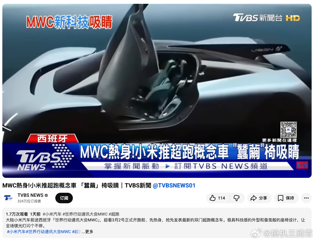 话说还是有点小自豪的,好多老外在MWC上围观小米VGT,主要设计确实惊艳,以风塑形,车身如水滴般流畅,把空气动力学玩到极致,风阻系数就只有0.29。十字大灯、光环尾灯、黑洞轮毂,颜值和效率都在线,而且还有AI大模型加持,这不仅是技术突破,更是中国设计的自信宣言,让老外们也好好感受下小米VGT让世界看见中国设计