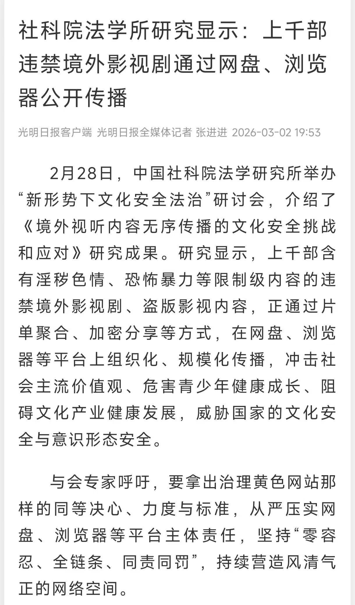 网盘成违规影视剧避风港盗版境外剧在网盘泛滥,危害版权秩序与内容安全。抵制违规资源