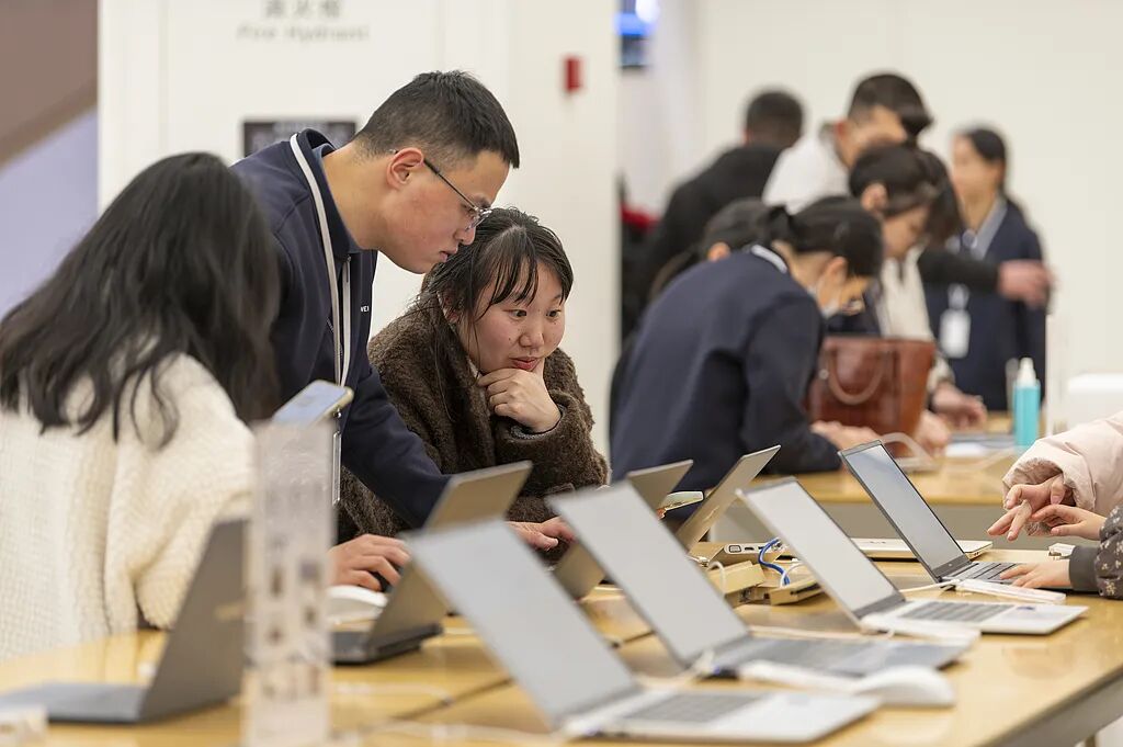 △今年1月,在浙江金华,消费者在选购电子产品。