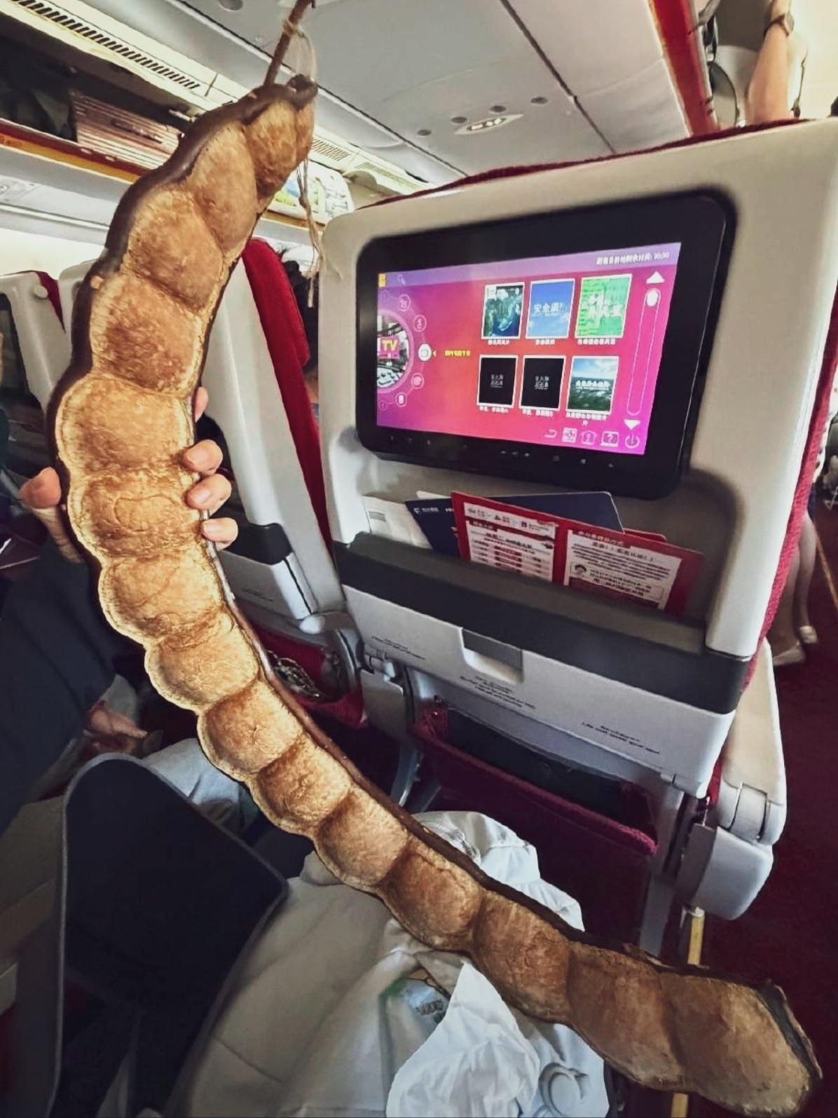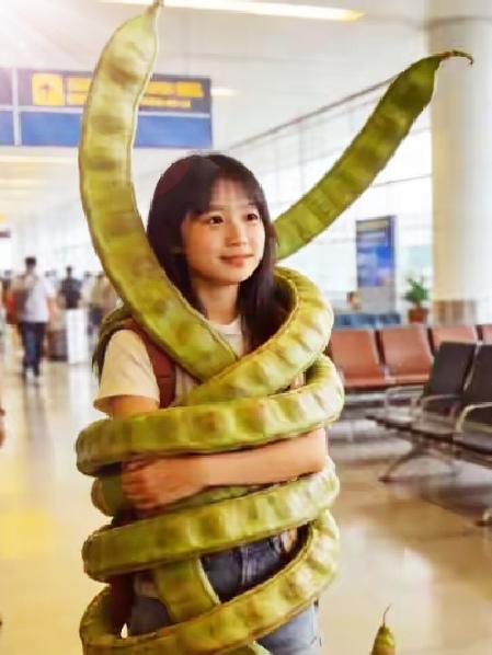 🔥云南一米多大豆荚刷屏!女子带它坐飞机火遍全网。云南惊现1米多长巨型豆荚,一夜刷屏!游客花64元买下,盘在身上坐飞机,跨越4000公里带回东北,机场全程围观,回头率爆表。它学名榼藤,外号“过江龙”,是我国最大豆荚,造型奇特像长龙,晒干可做摆件。网友笑称:云南特产又添新顶流,比鲜花饼还吸睛!过江龙豆荚 过江龙藤条 柯藤豆荚