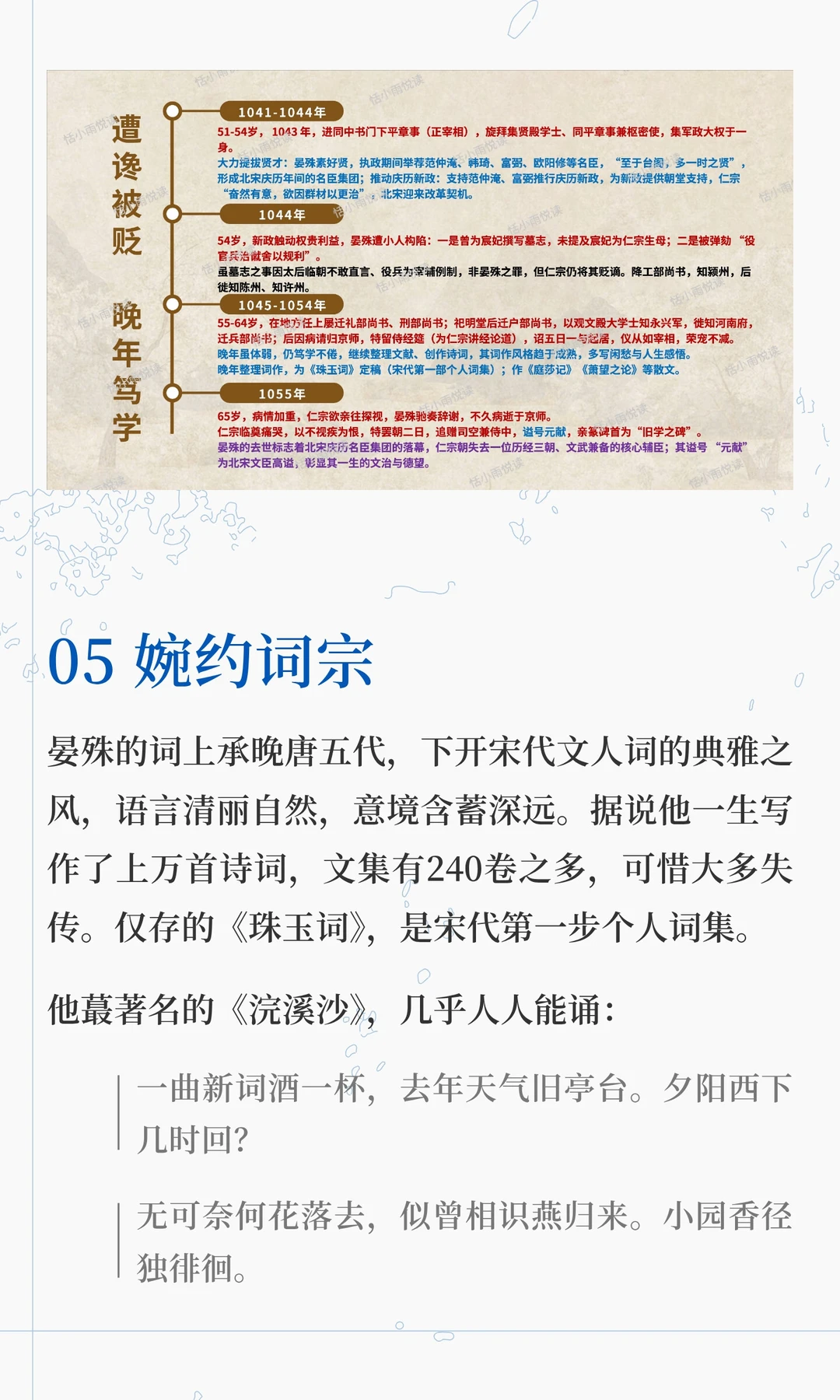 晏殊,北宋文坛传奇,7岁能诗,15岁殿试,官至宰相,提携范仲淹、欧阳修等名臣,晚年主持“庆历新政”。 24页ppt,解析晏殊的一生。