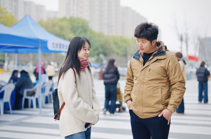 招聘会现场,两个站着的身影格外引人注目。匡婷婷和杭州杰秀暖通设备有限公司总经理邓意华正聊得火热。