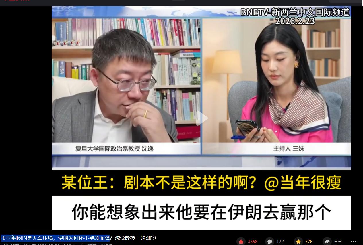 我是做视频切片的,我想谈谈这两天对沈逸教授的莫名攻击。 一个关于美国是否会对伊