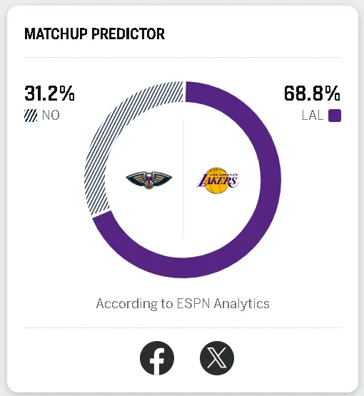 湖人今日对战鹈鹕,胜率高达68.8%!双方都是全员出战,应该打的很好看!鹈鹕vs