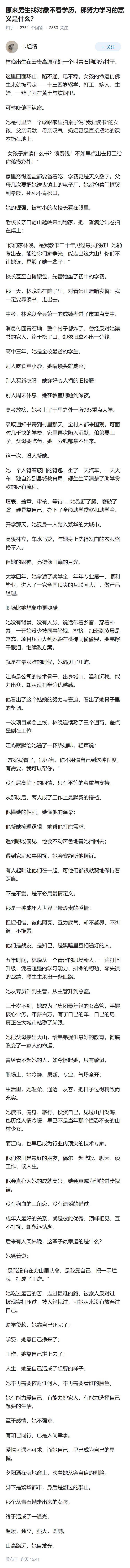 不管是不是编的文章,男的女的,学习都是为自己学的,不是为另一半,不是为父母。