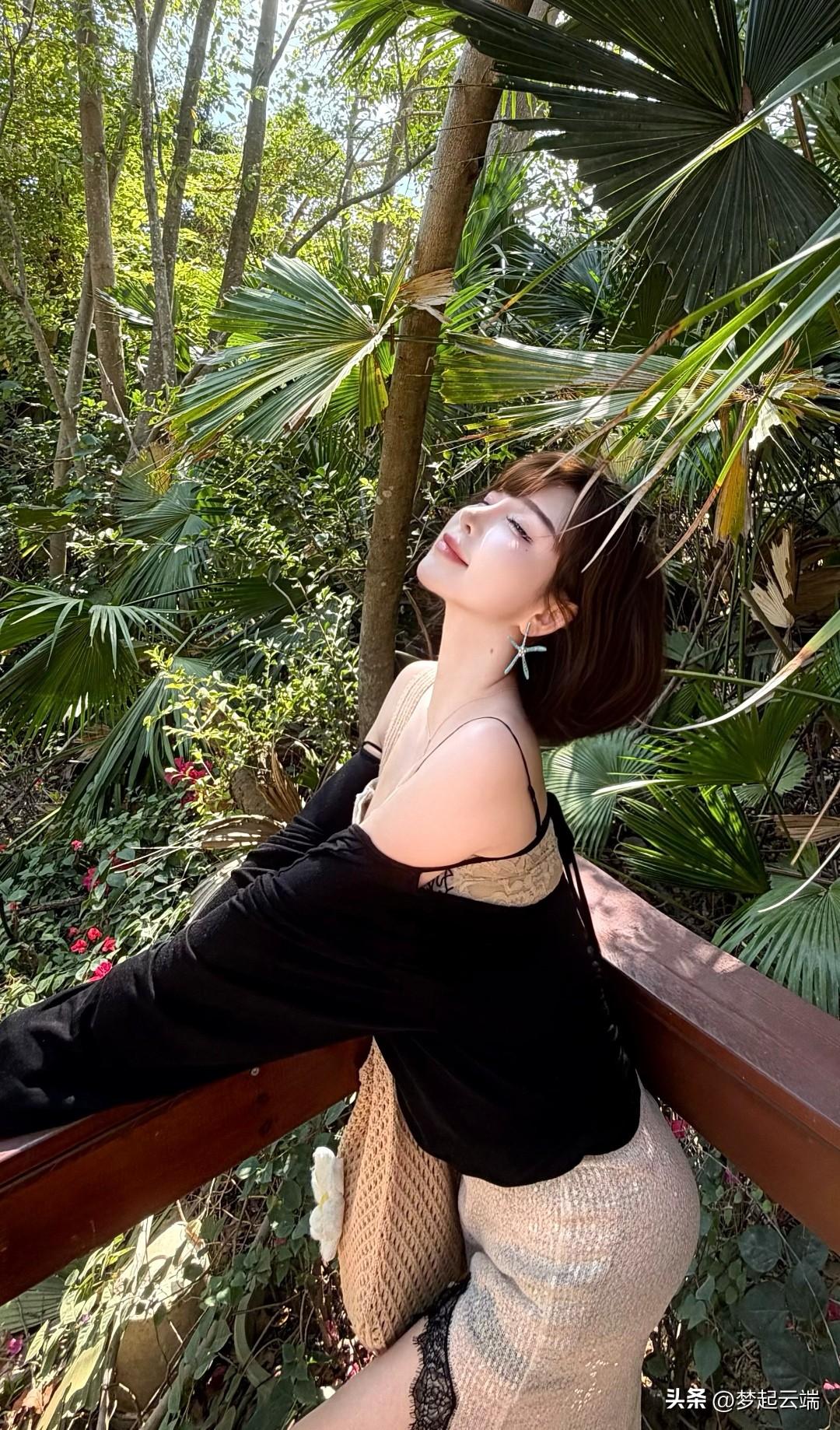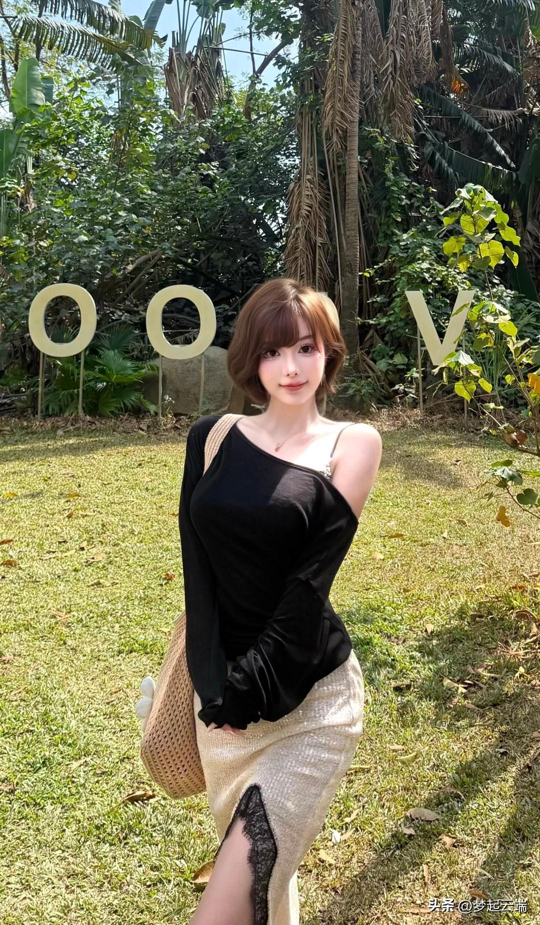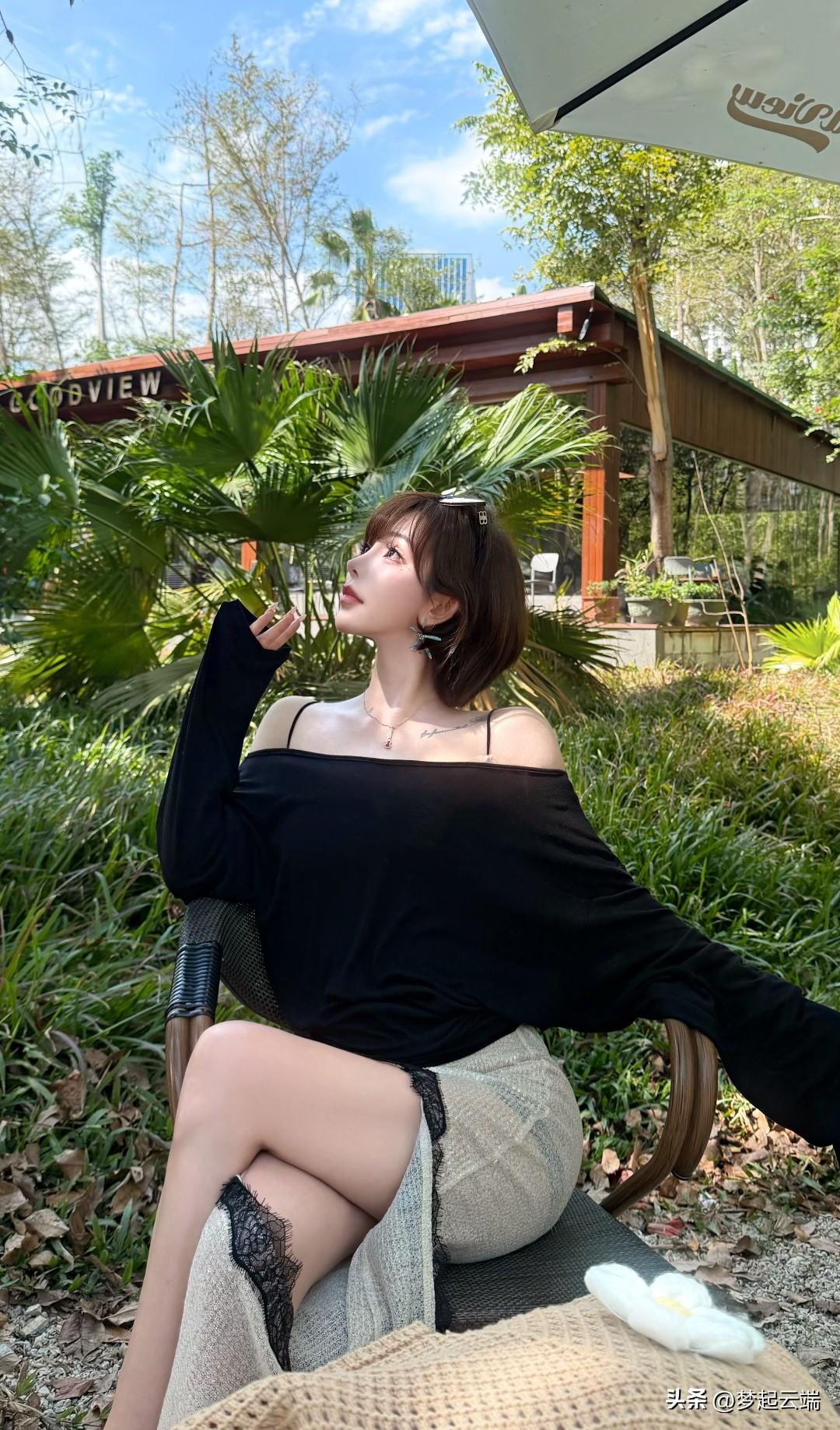 黑色露肩上衣搭配米色长裙,清新自然,尽显夏日风情!🌞👗💃