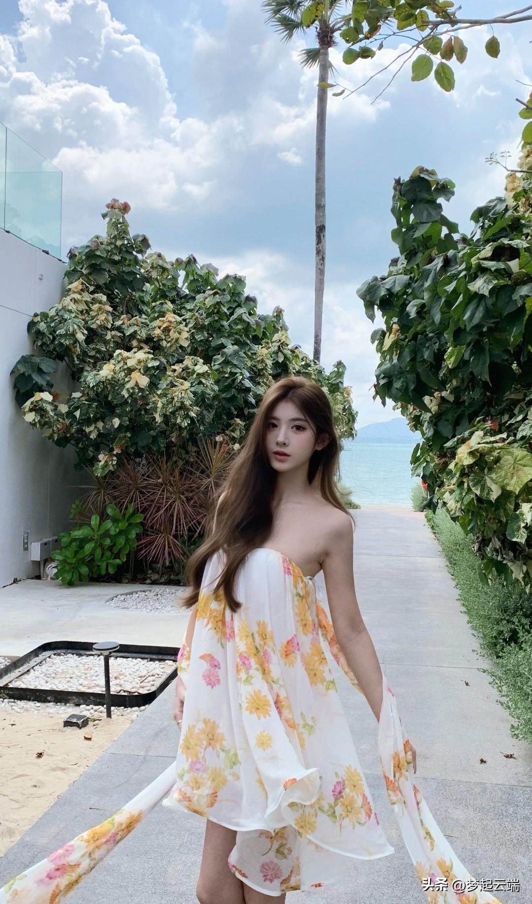 海边度假风,花裙飘飘,少女心满满。