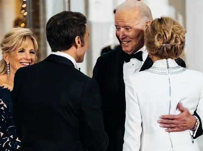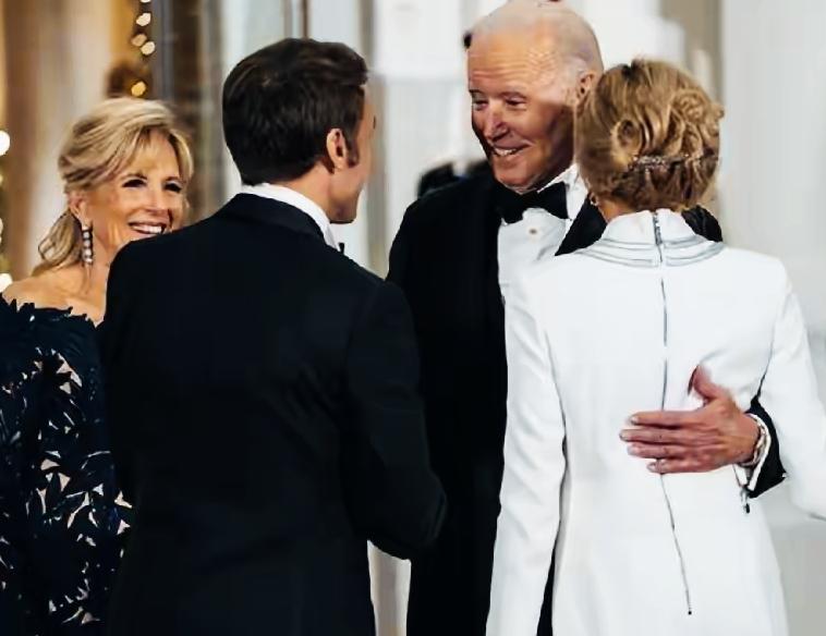 马克龙和拜登夫妇在聊什么呢?聊的这么开心啊! 拜登夫妇二人一脸的笑意,看来和马克龙交流的很愉快啊! 不知此刻马克龙妻子布丽吉特是什么表情呢?