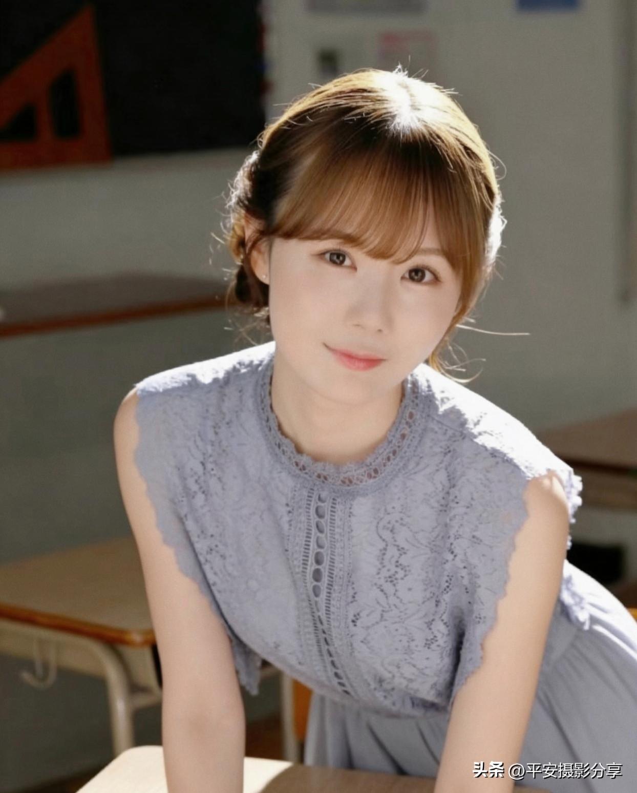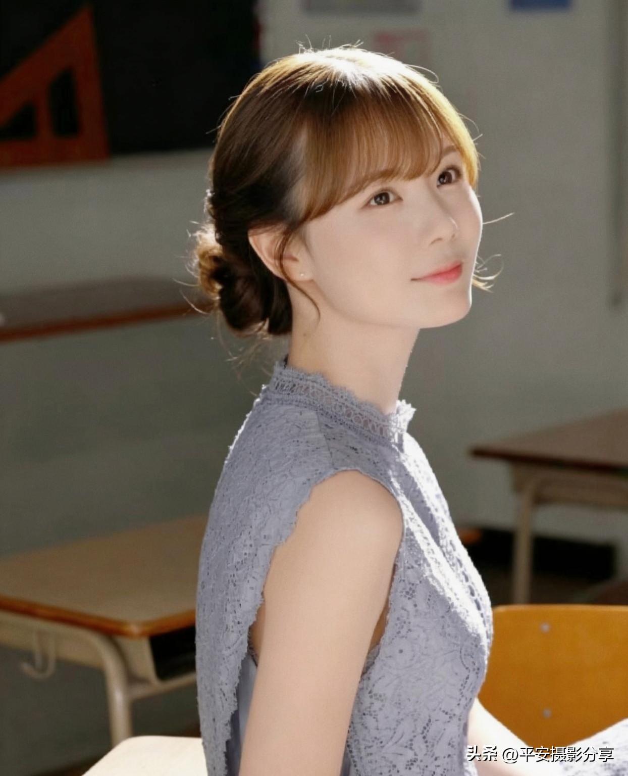 优雅气质,浅蓝色蕾丝连衣裙,温柔微笑,自然光下更显迷人。女生如何穿搭看起来时尚更
