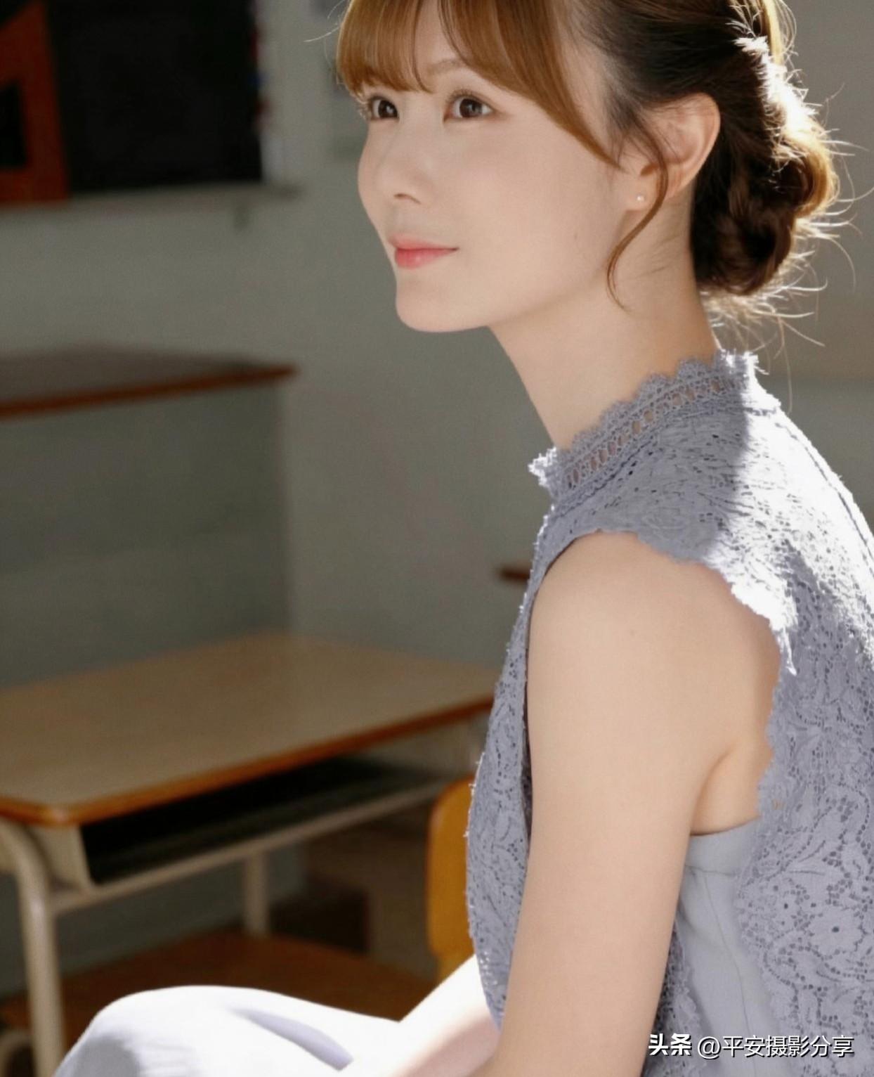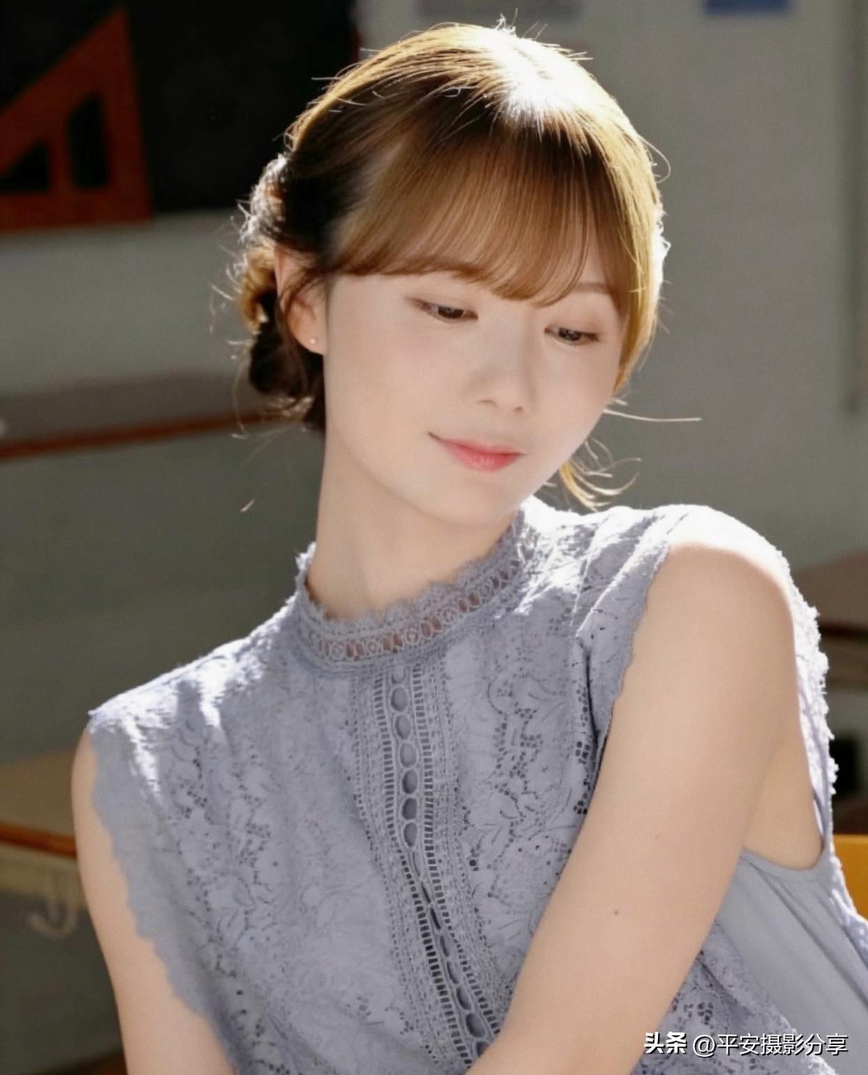 优雅气质,浅蓝色蕾丝连衣裙,温柔微笑,自然光下更显迷人。女生如何穿搭看起来时尚更有品味呢 每日搭配分享·时尚穿搭