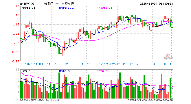 3月4日,TMT50ETF招商(159909)开盘跌0.18%,报1.084元。TMT50ETF招商(159909)重仓股方面,中际旭创开盘跌1.73%,新易盛跌1.20%,立讯精密跌1.52%,北方华创跌0.66%,胜宏科技跌1.37%,京东方A跌0.69%,中兴通讯跌0.87%,海康威视跌0.92%,东山精密跌4.09%,沪电股份跌0.88%。