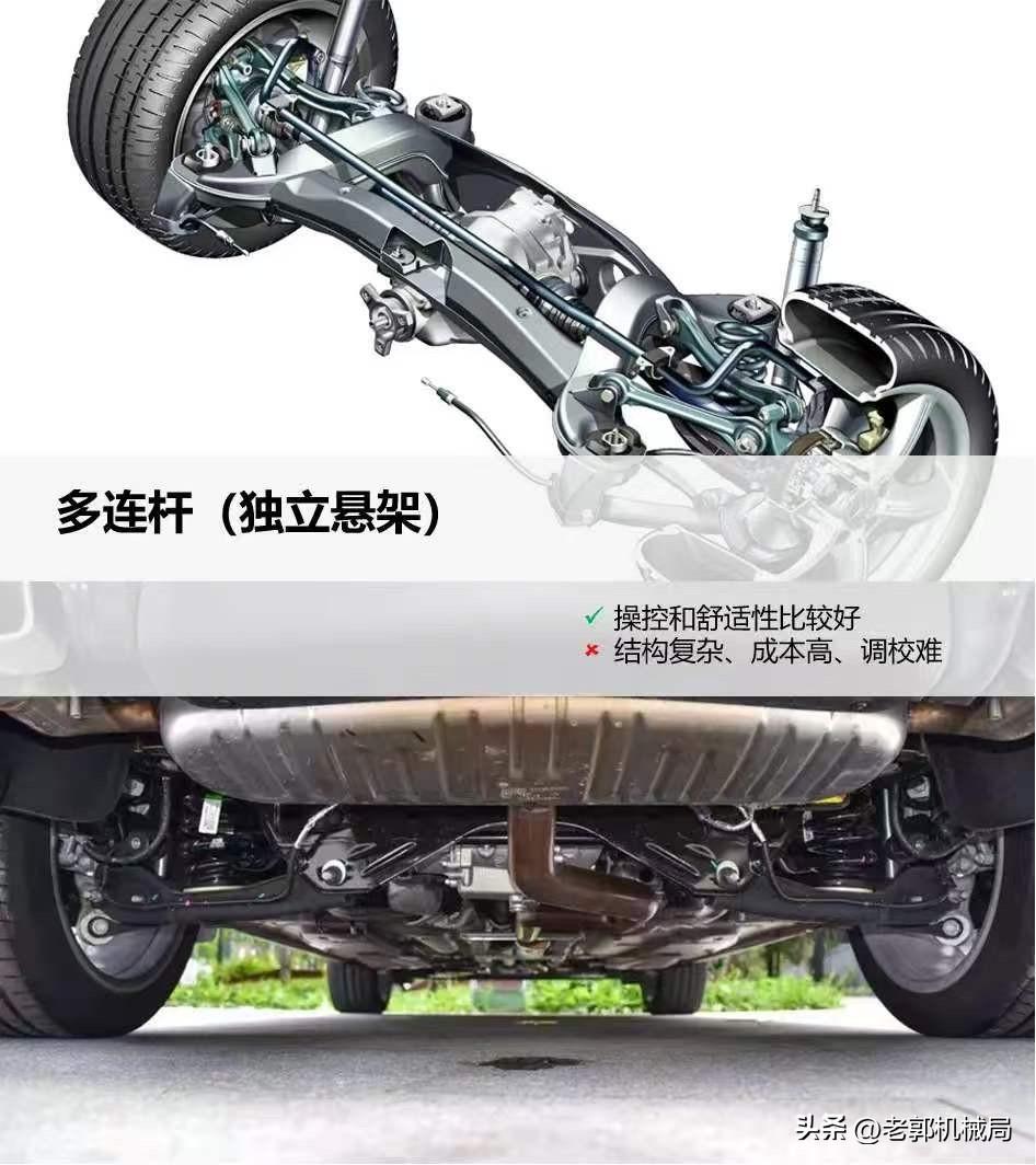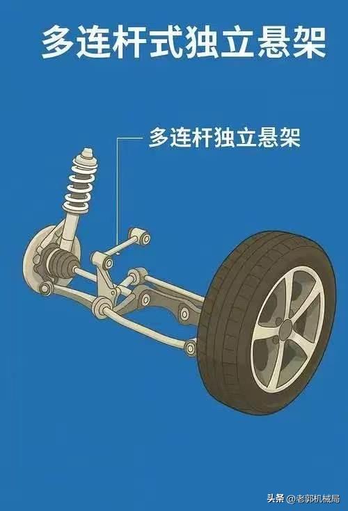 这事儿就奇怪了,明明多连杆更贵,为什么就不能算是最好的悬架系统? 这事儿其实是看你怎么说了,要论操控的话,那多连杆悬架还真就不如双叉臂悬架。 双叉臂的话是上下两个三角形支臂,一点固定在车架上,一点固定在羊角上,这种架构就导致它的横向支撑力非常强,转弯的时候也就更稳,所以操控性也就更好。 这也是为什么跑车、性能车、高端性能SUV,比如法拉利、兰博基尼、蔚来ET9、极氪001 FR,前悬架几乎全是双叉臂 ——要的就是极限稳、操控准 再比如像宝马水鸟,基本上是摩托车里公认最好的ADV,它的前悬架就是应用的类似汽车结构中的双叉臂悬架,所以要比一般的摩托车更稳,急刹的时候也不会出现点头的现象。 那多连杆呢,你说它哪里不如双叉臂? 严格来说的话多连杆只能算是个后悬架(奥迪的前五连杆其实也是把双叉臂给拆成多连杆的),为什么这么说呢? 多连杆最大的优势就是在车辆弹跳车轮离地时,能更稳更快的恢复到贴地状态,稳定性、舒适性确实可以,但因为它的连接点较多,力的传递路径更复杂,极限工况下它的横向支撑力没有双叉臂那么稳,论操控上限还真就是干不过双叉臂。 至于为什么说多连杆只能算后悬架,主要是因为车辆前轮要负责转向,空间又小,多连杆又太占地方,这也是为什么现在的车几乎前轮没有使用多连杆的原因。 不过说到底,悬架结构只是决定车辆的舒适、操控上限,车企的调校水平才是最核心的,这也是为什么说德系、美系车底盘稳,毕竟它们可都是百年车企,你想想看人家的调校水平能差吗?汽车人共创计划 文 张国成