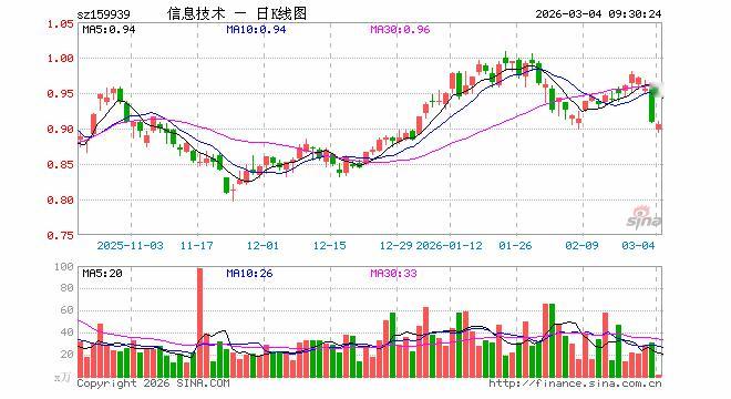 3月4日,信息技术ETF(159939)开盘跌1.32%,报0.897元。信息技术ETF(159939)重仓股方面,立讯精密开盘跌1.52%,寒武纪跌0.98%,工业富联跌1.64%,中芯国际跌0.91%,海光信息跌1.67%,北方华创跌0.66%,胜宏科技跌1.37%,京东方A跌0.69%,兆易创新涨0.00%,澜起科技跌0.60%。