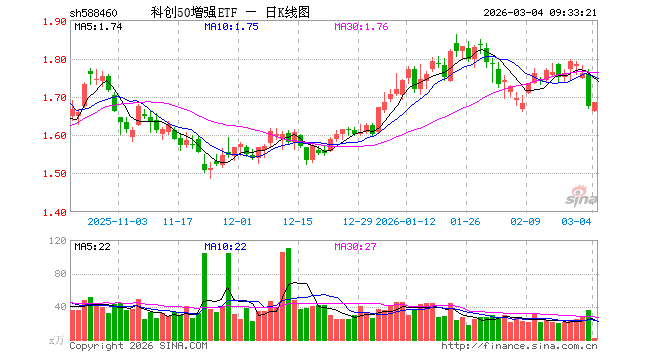 3月4日,科创50增强ETF(588460)开盘跌0.66%,报1.663元。科创50增强ETF(588460)重仓股方面,海光信息开盘跌1.67%,寒武纪跌0.98%,中芯国际跌0.91%,澜起科技跌0.60%,中微公司跌1.35%,拓荆科技跌0.14%,金山办公跌0.97%,芯原股份跌3.64%,盛美上海跌0.77%,九号公司跌0.82%。