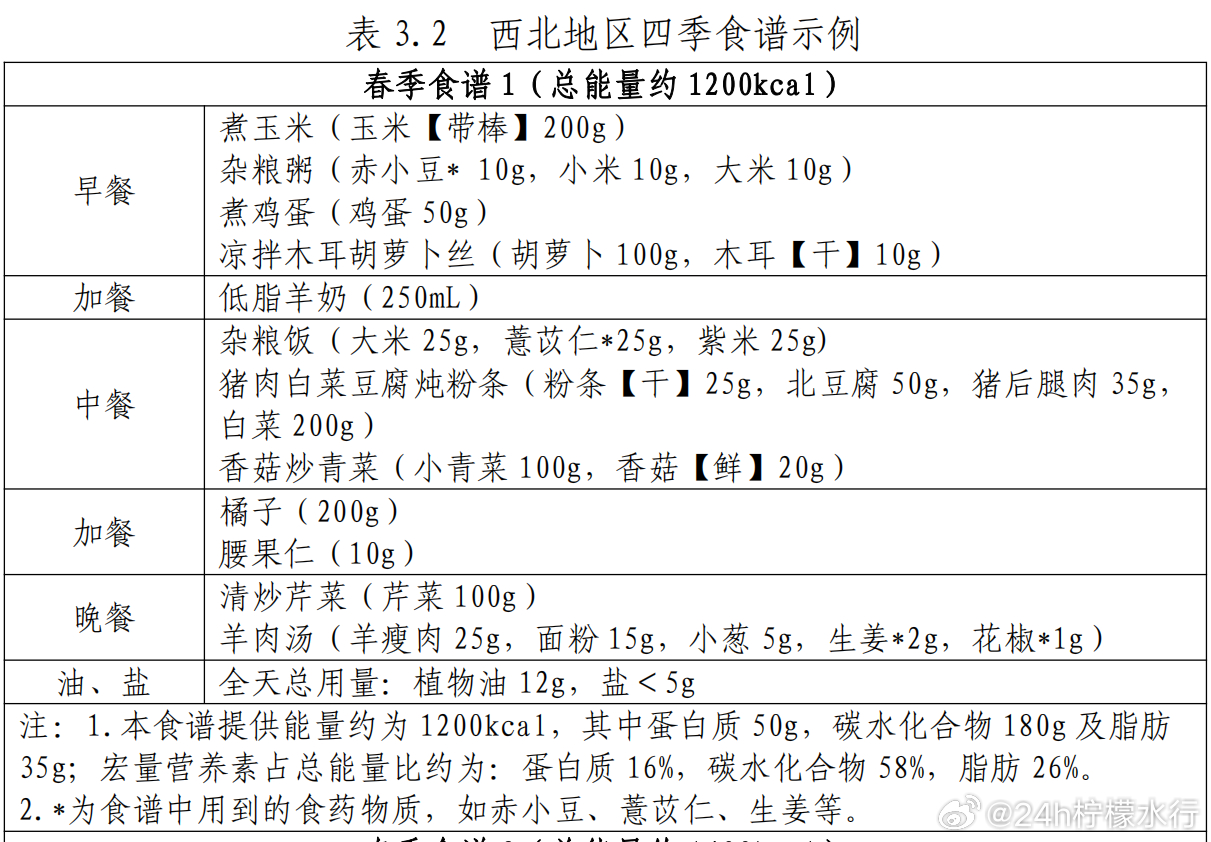 💛💛💛今天小行为大家准备了几套春季健康营养食谱,大家可自行结合所在地区进行参考~国家卫健委发布的健康食谱